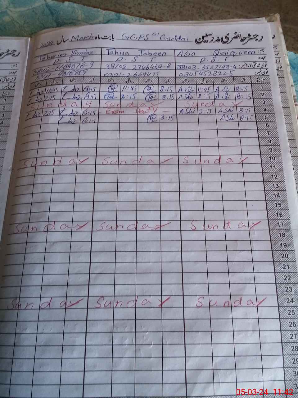 | Name: As**** Sh**** Designation: (School Headmaster's/Headmistress's) PST HEAD Phone/Cell Number: 03**** |