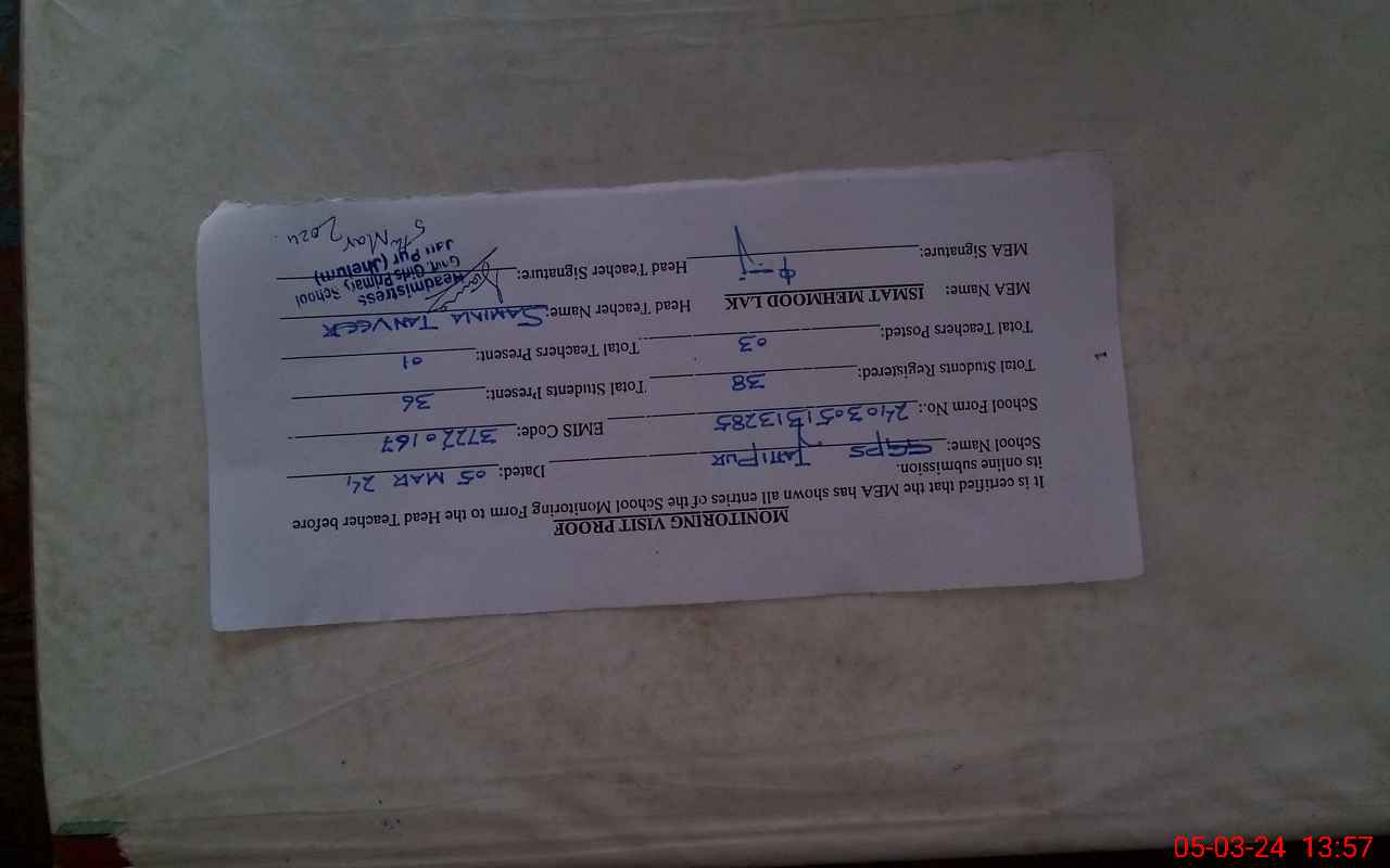 | EMIS Code: 37220167 | Name of School: GGPS JATIPUR | |||