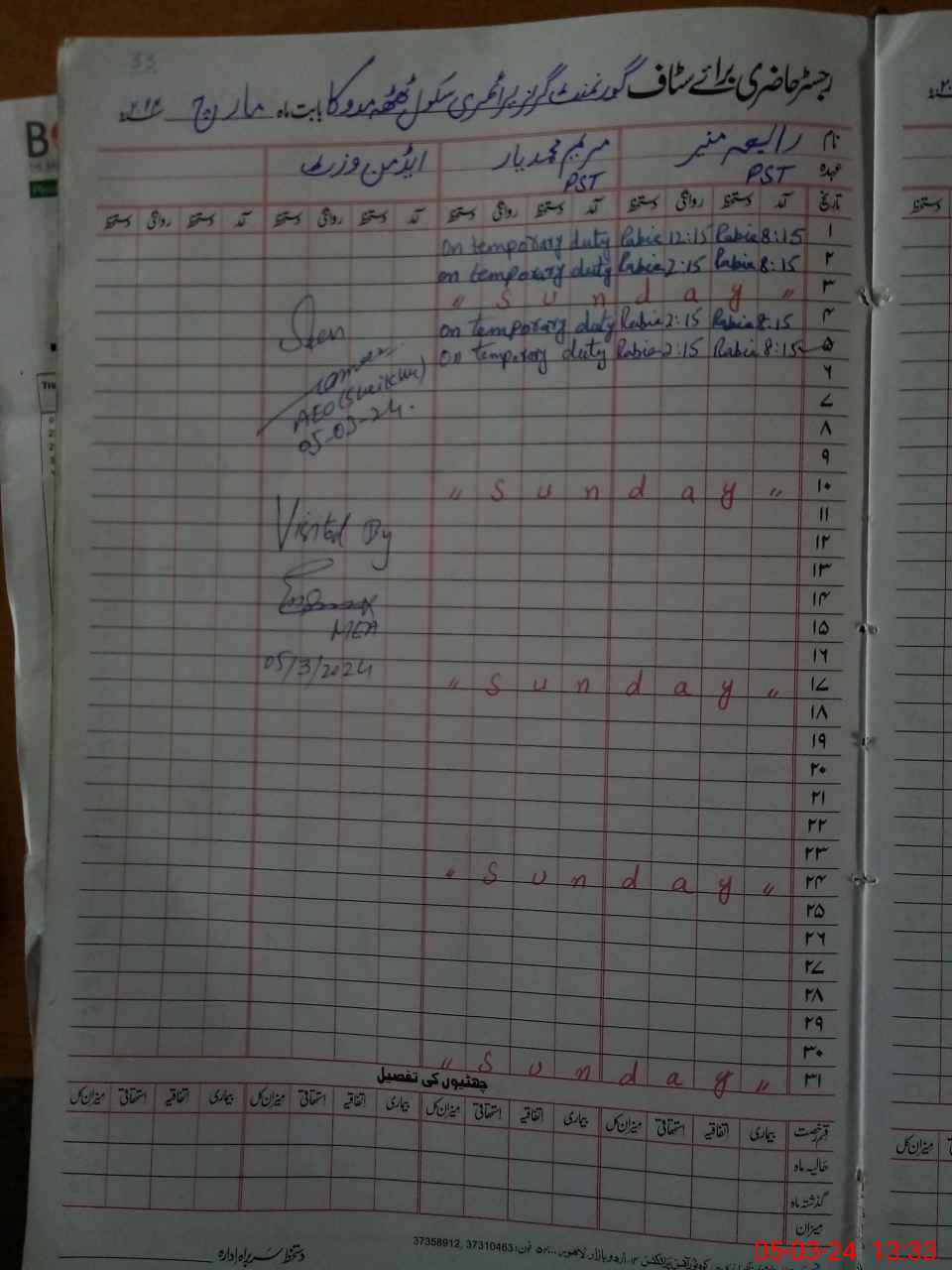 | 35**** | Ma**** Mu**** Ya**** | PST | Regular | 0 | 0 | 29 | 0 | 0 | 0 | 0 | 0 | 0 | Absent (Un-Authorized) |