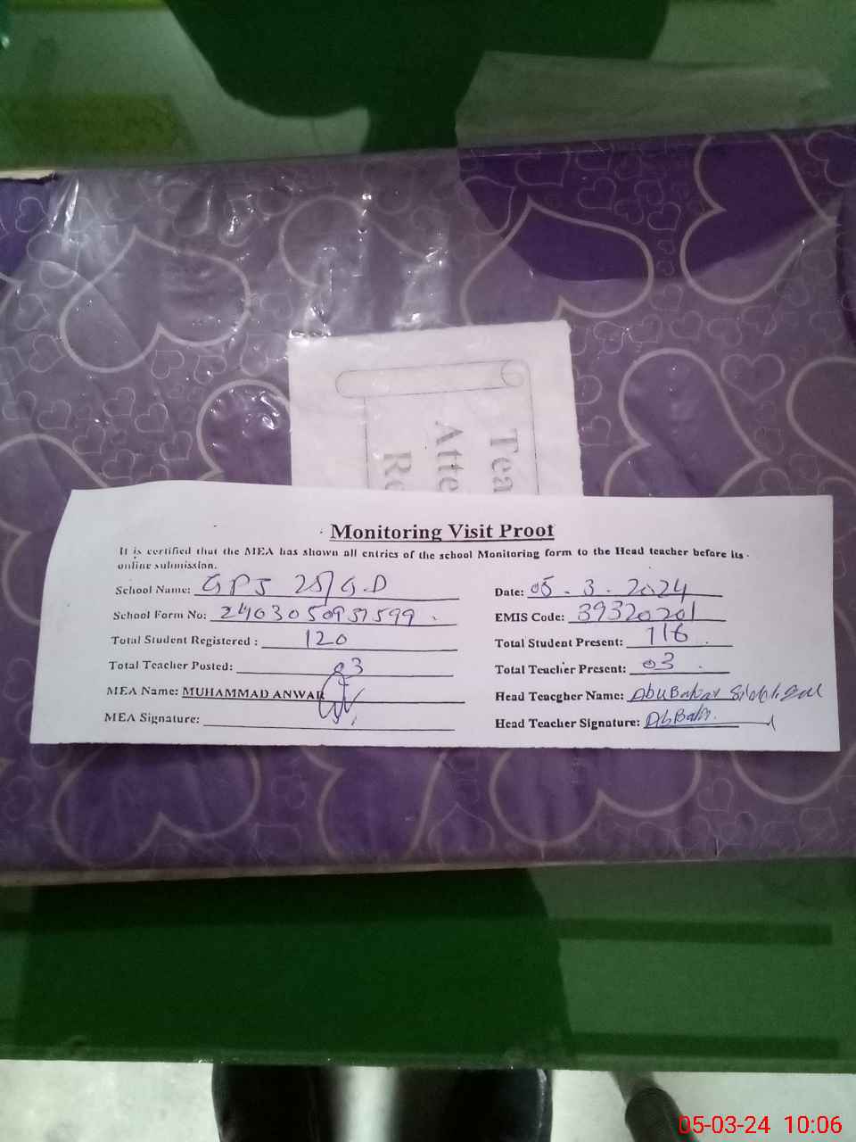 | EMIS Code: 39320201 | Name of School: GPS CHAK 25/G.D | |||