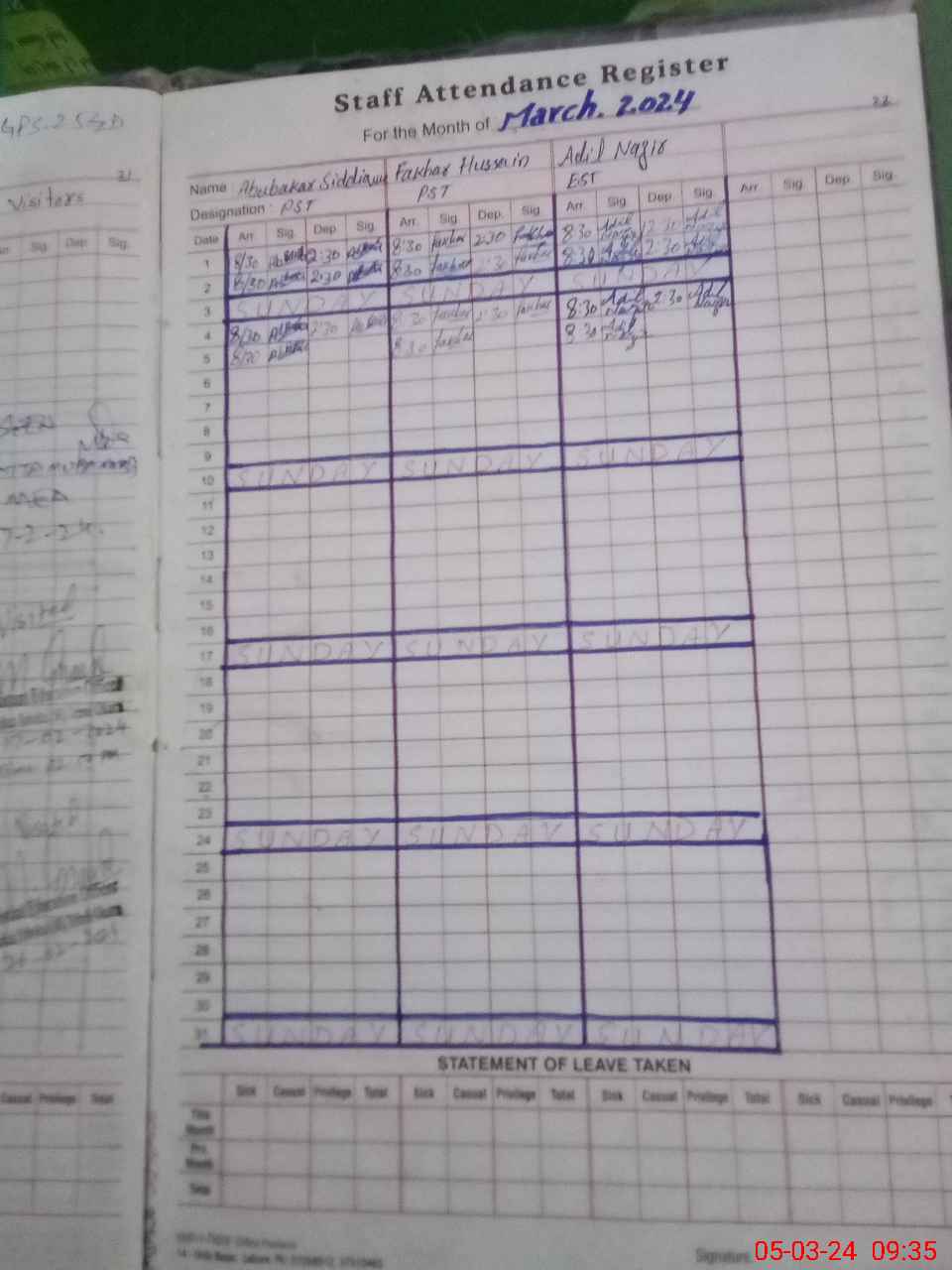 | Name: Ab**** Si**** Designation: (School Headmaster's/Headmistress's) PST Phone/Cell Number: 03**** |