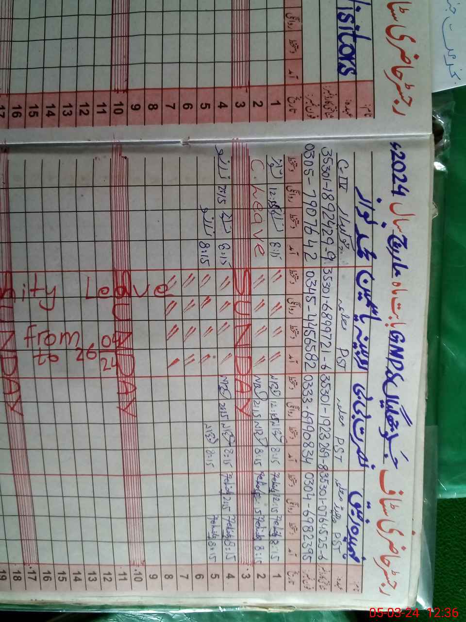 | Leave | Duty | Absent | Maternity | Medical | Ex- Pak |