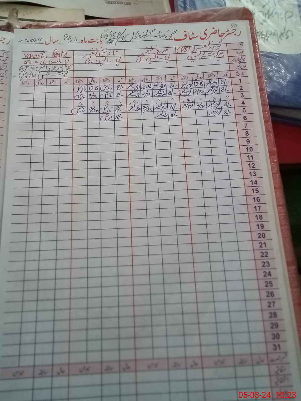| CNIC | Full Name | Designation | R/C | Absence During Last Calender Month |
