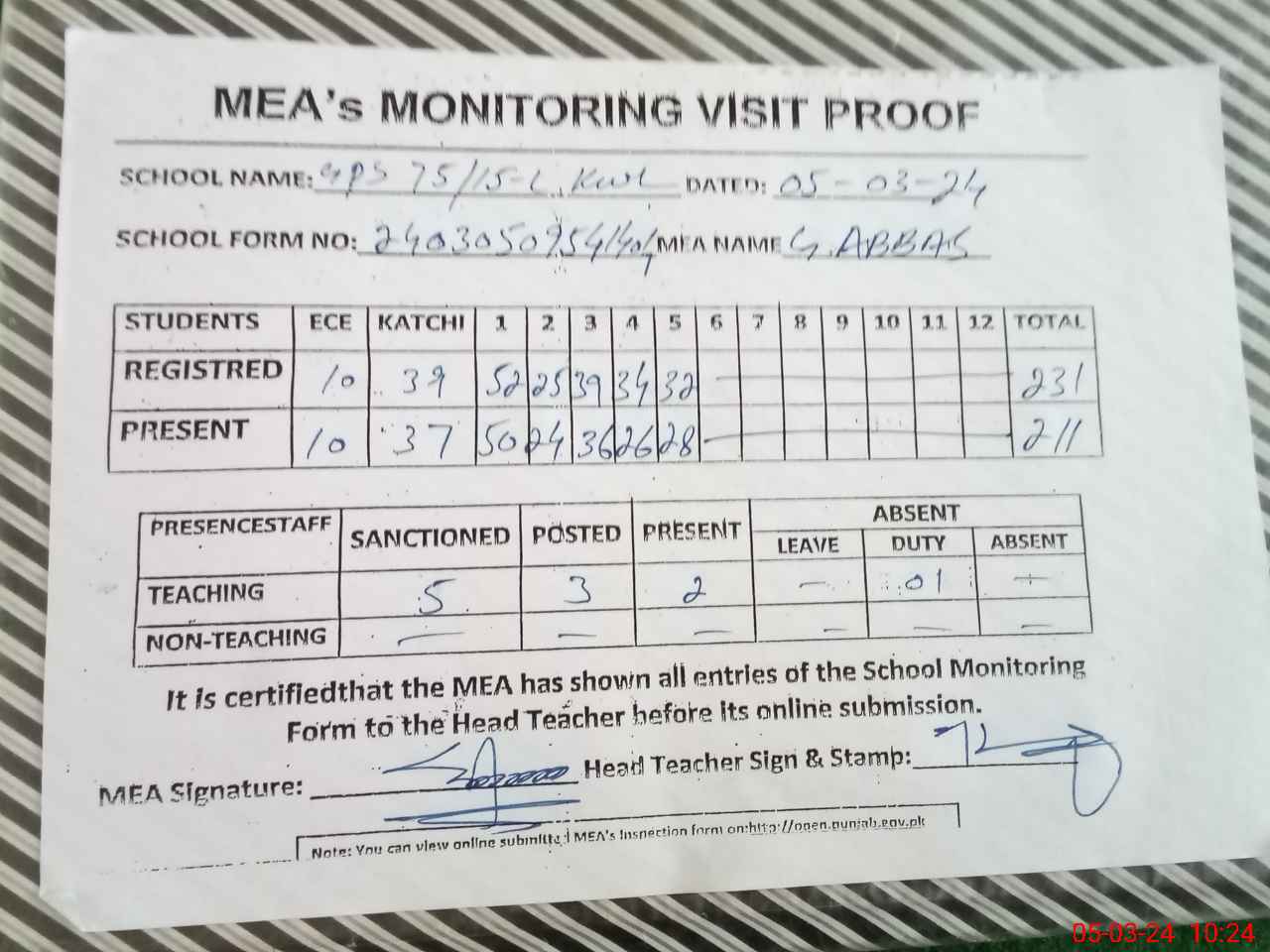 | EMIS Code: 36420674 | Name of School: GES 75/15-L, P/O 70/15-L, KHANEWAL | |||