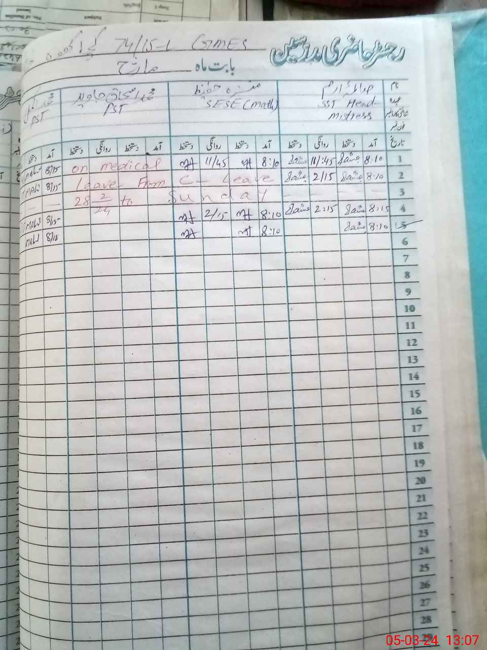 | Remarks (Use Separate Page if Required): During random attendance of 15 students listed students are promotted to next classes and some have left the school No AEO visit in last two months | |||||