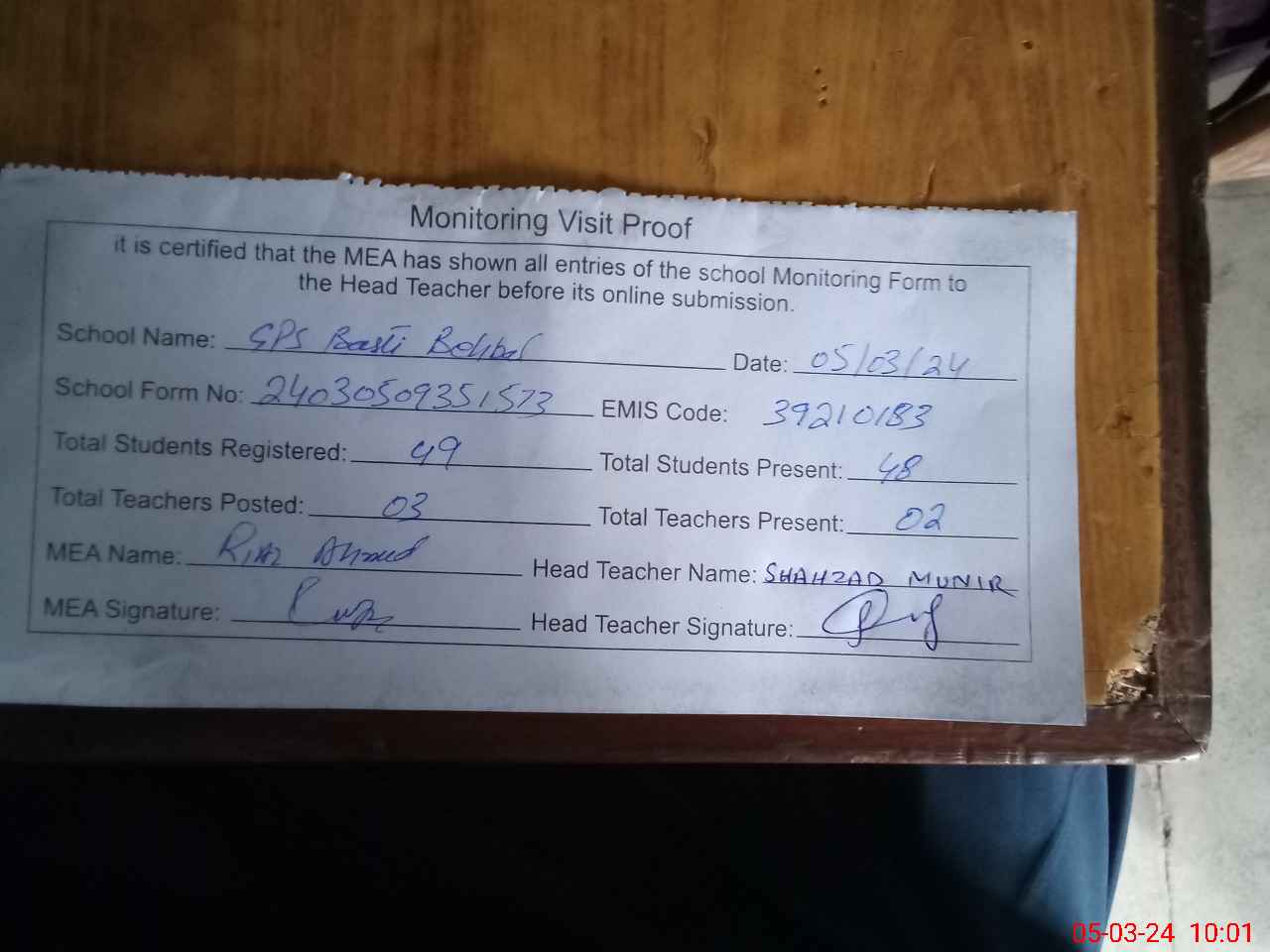 | EMIS Code: 39210183 | Name of School: GPS BASTI BEHBAL KHAN PAKPATTAN | |||