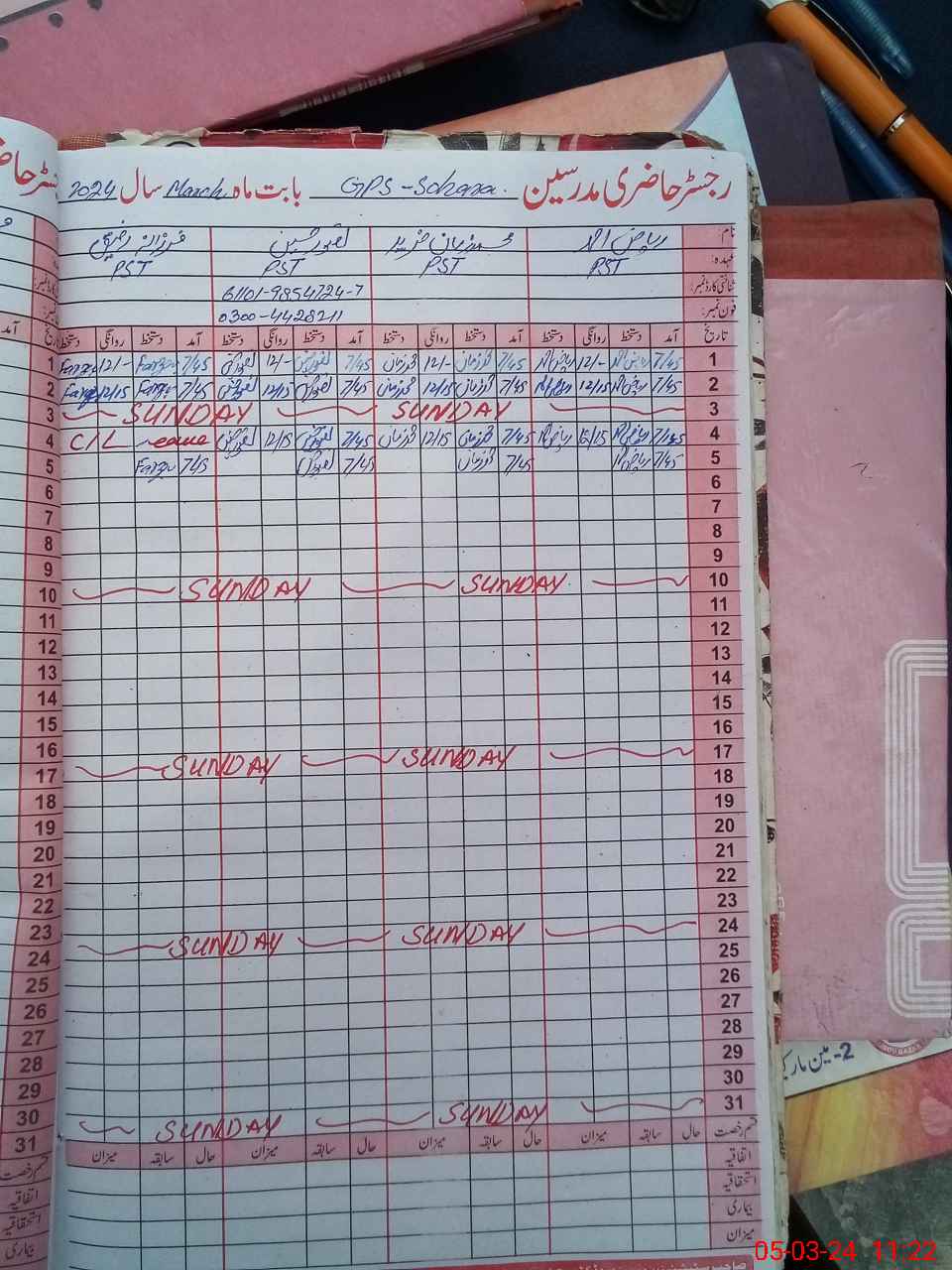| Name: RI**** AH**** Designation: (School Headmaster's/Headmistress's) PST Phone/Cell Number: 03**** |