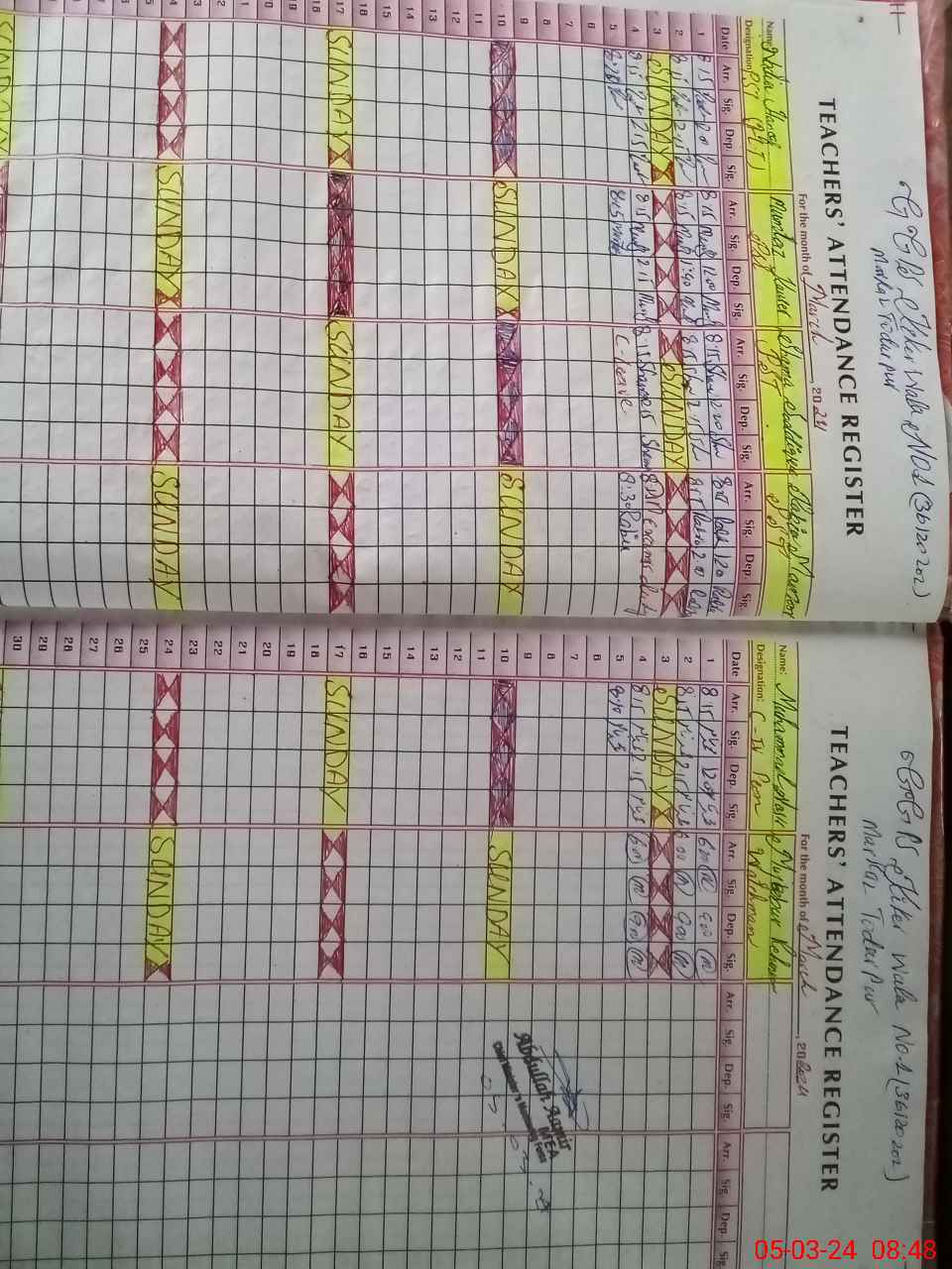 | Remarks (Use Separate Page if Required): Note 03 Teachers came late | |||||