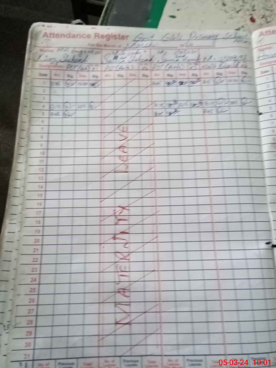 | Leave | Duty | Absent | Maternity | Medical | Ex- Pak |