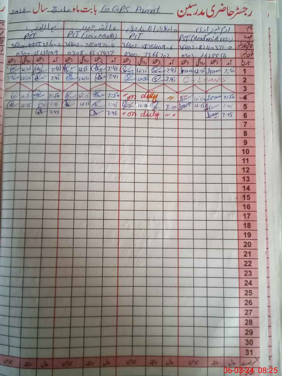| Name: IR**** SH**** Designation: (School Headmaster's/Headmistress's) PST Phone/Cell Number: 03**** |