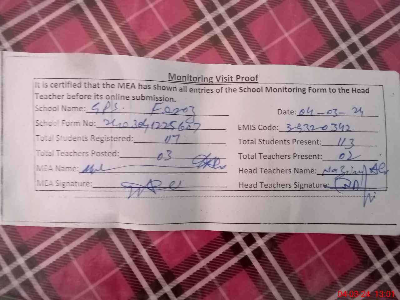 | EMIS Code: 39320342 | Name of School: GPS FEROZE | |||