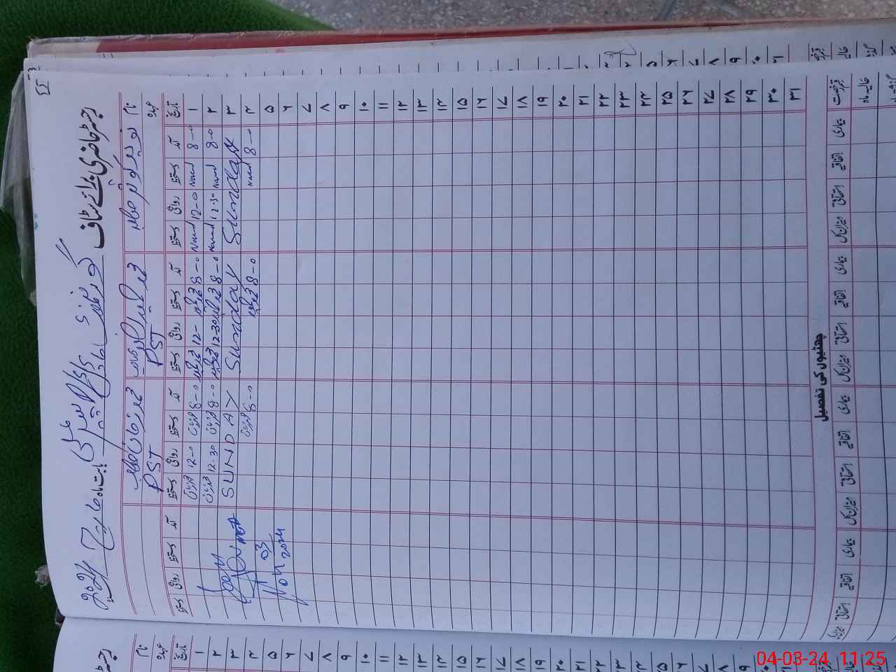 | CNIC | Full Name | Designation | R/C | Absence During Last Calender Month |