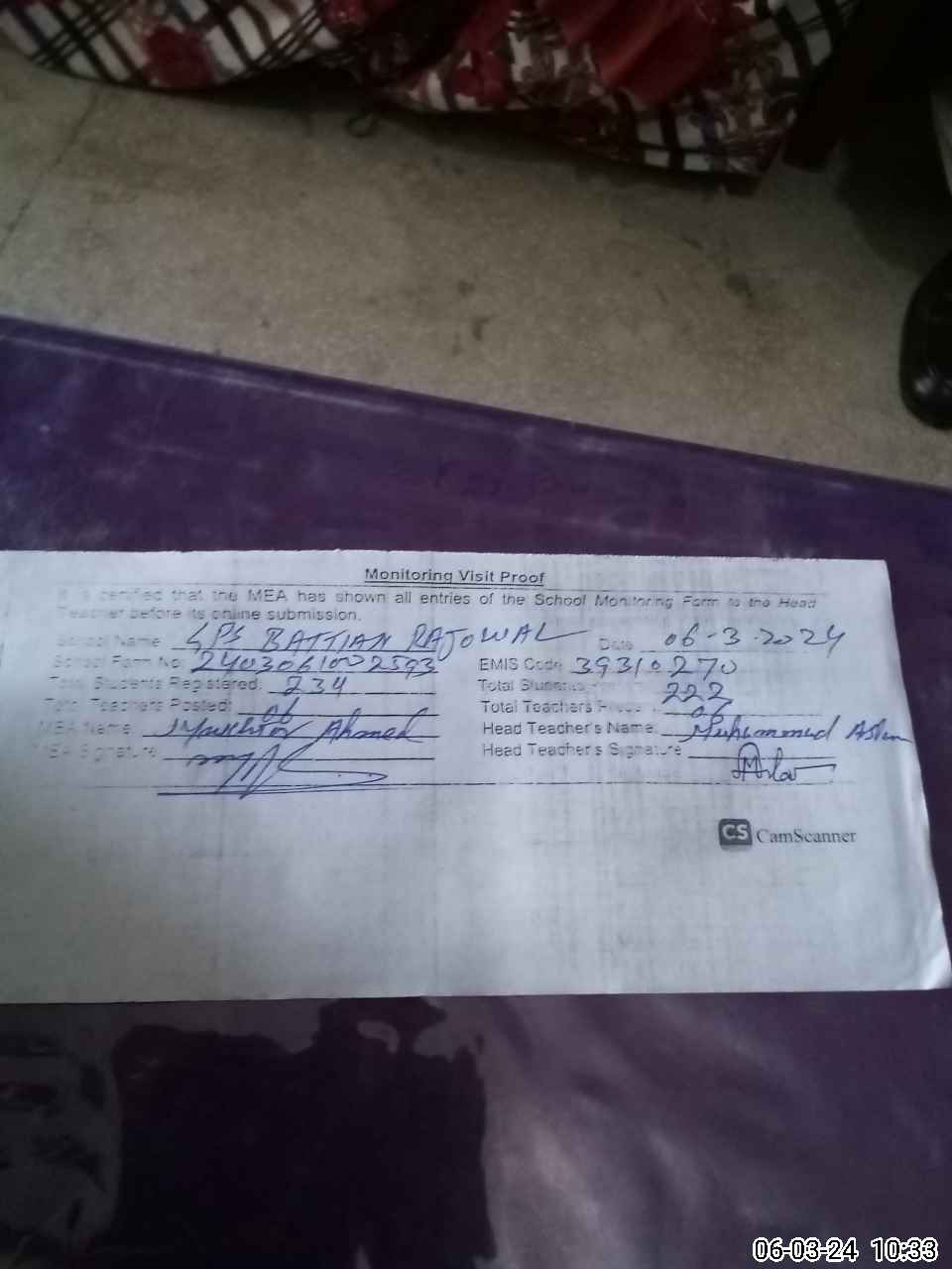 | EMIS Code: 39310270 | Name of School: GPS BATTIAN RAJOWAL | |||