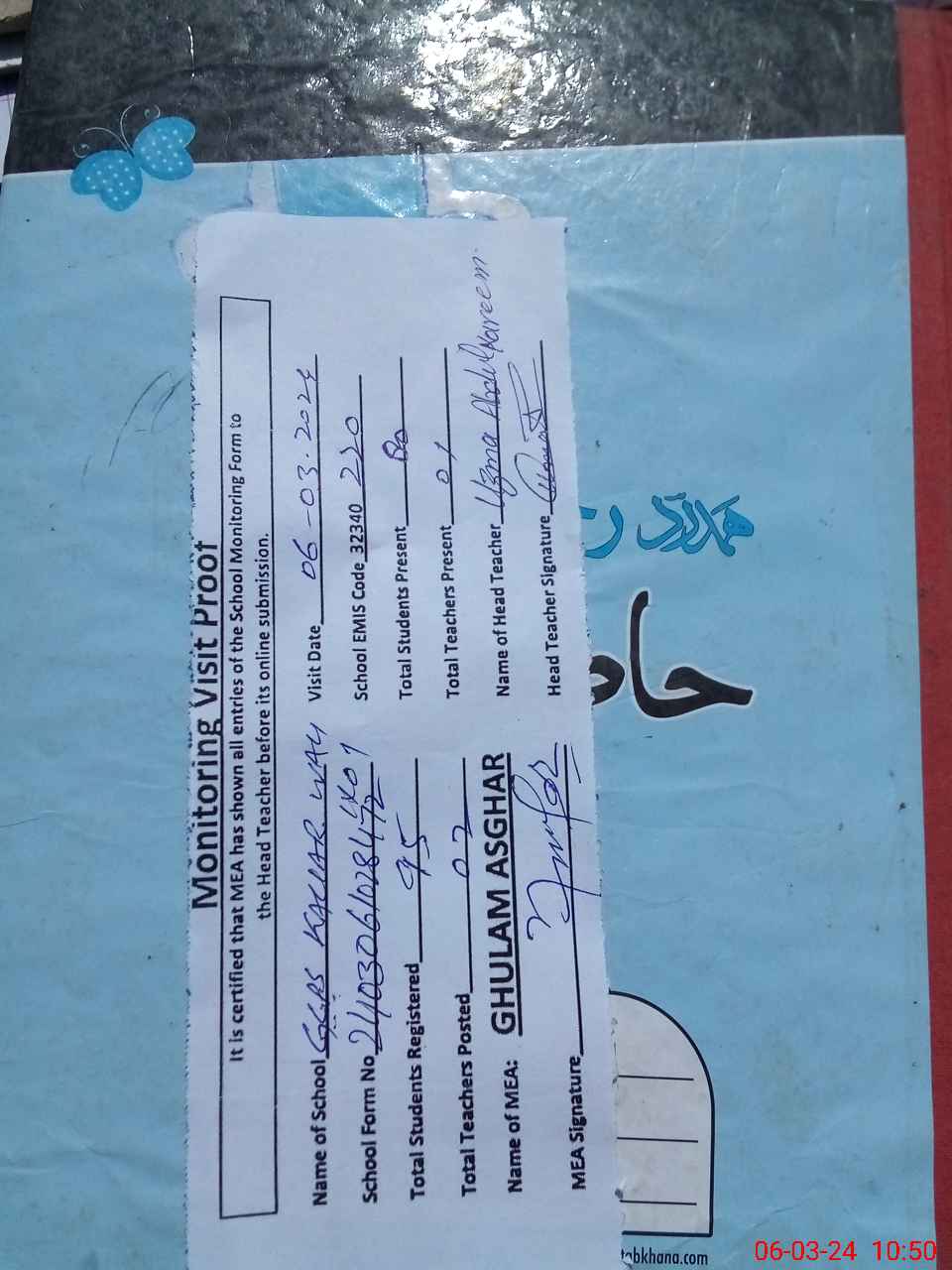 | Attendance Register | Head Teacher | MEA with School | Visit Proof |