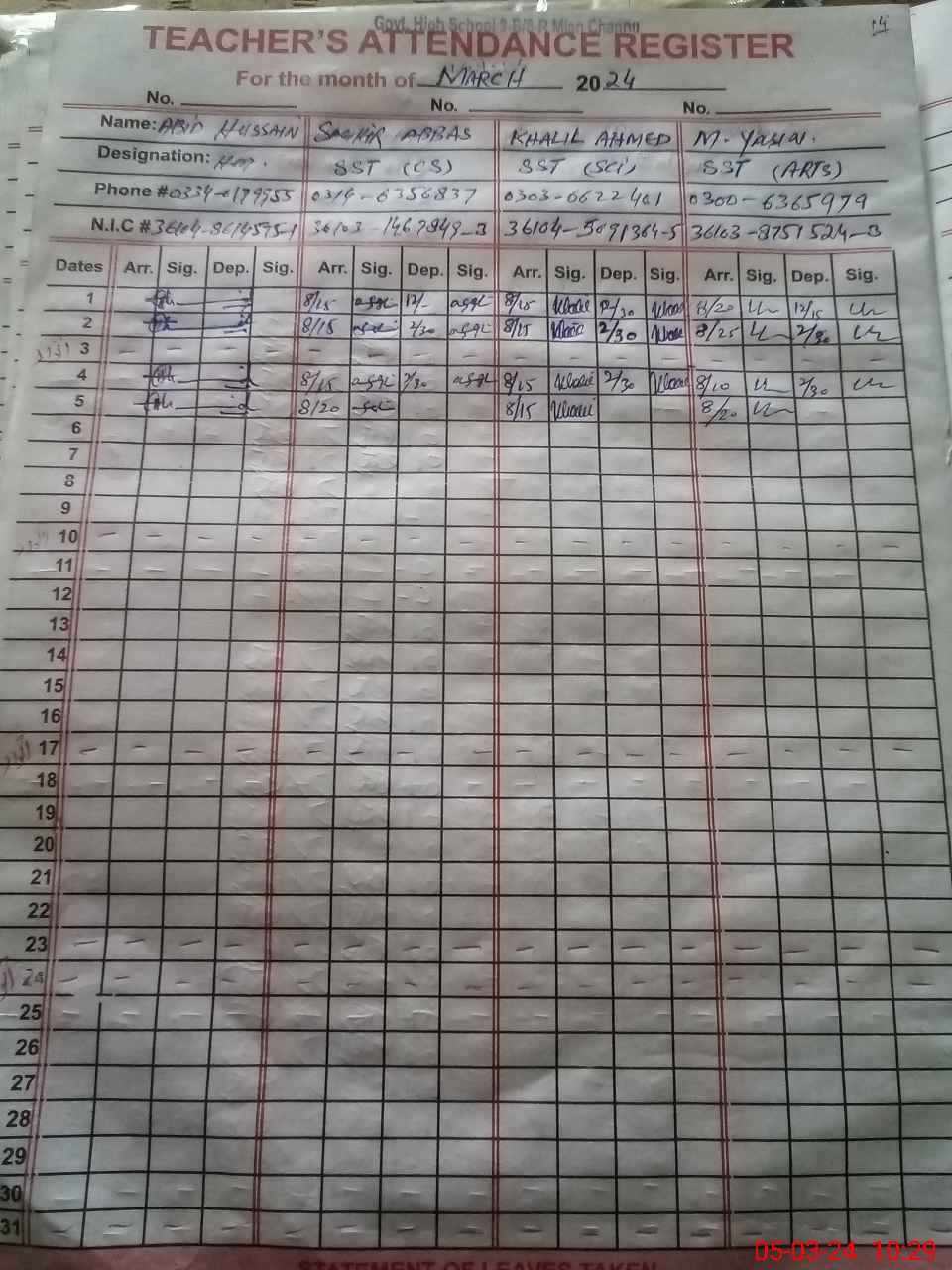 | Name: MU**** IM**** NA**** Designation: (School Headmaster's/Headmistress's) SST IT OPS HM Phone/Cell Number: 03**** |