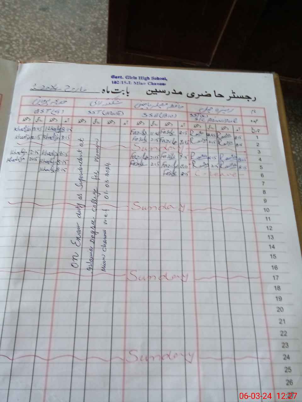 | 36**** | As**** Ta**** | 1 | 0 | 29 | 0 | 0 | 0 | 0 | 0 | 0 | 0 | Exam Duty | |