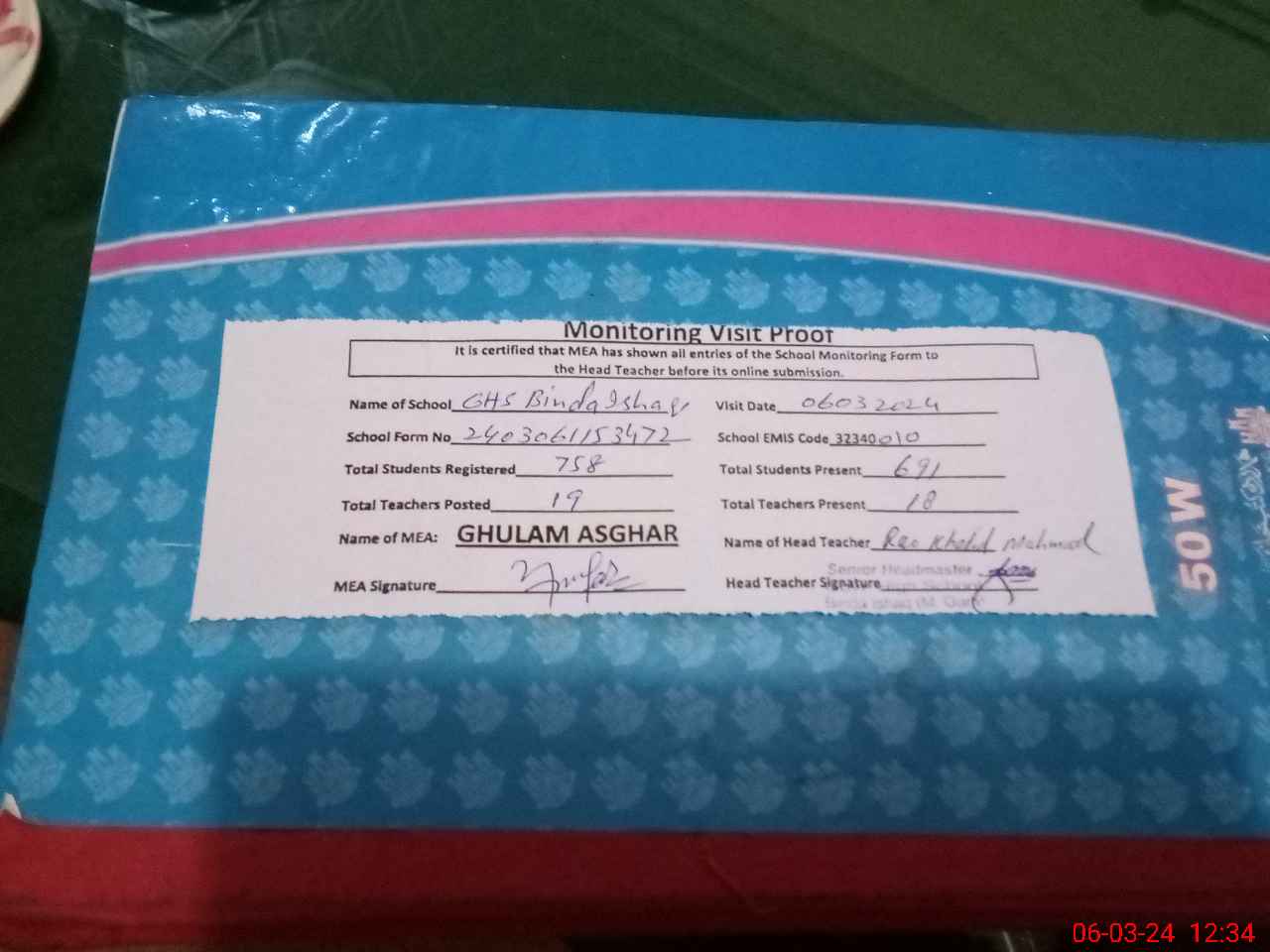 | EMIS Code: 32340010 | Name of School: GHS BINDA ISHAQ | |||