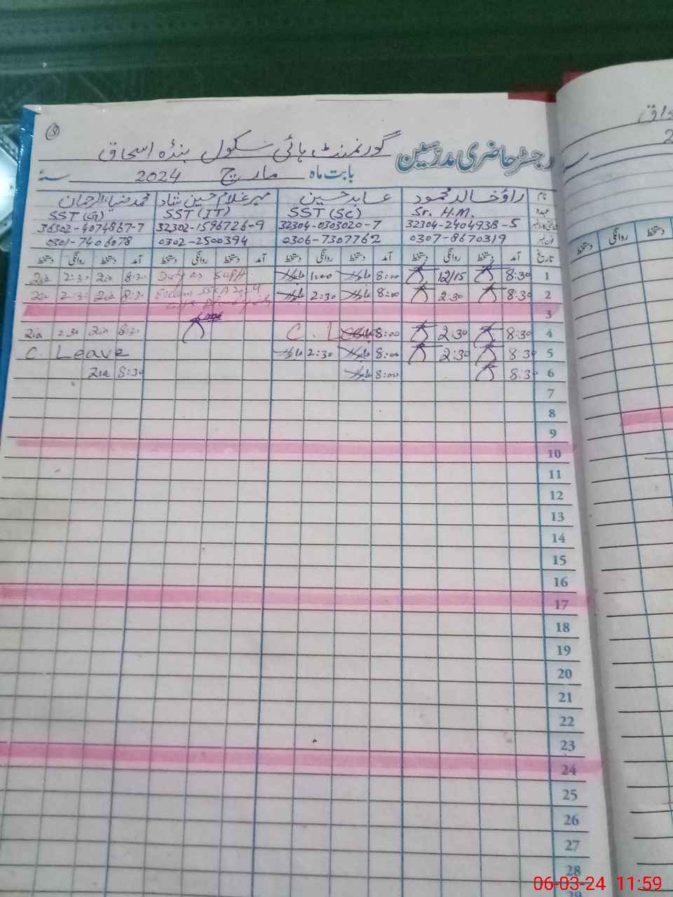 | Name: Kh**** Ma**** Designation: (School Headmaster's/Headmistress's) SHM Phone/Cell Number: 03**** |