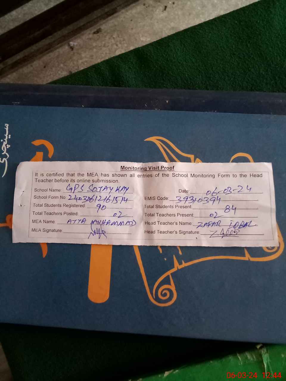 | EMIS Code: 39310394 | Name of School: GPS SOJAY KAY | |||