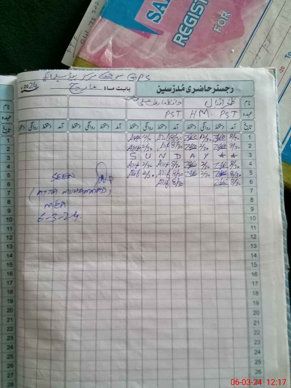 | Name: ZA**** IQ**** Designation: (School Headmaster's/Headmistress's) PST Phone/Cell Number: 03**** |