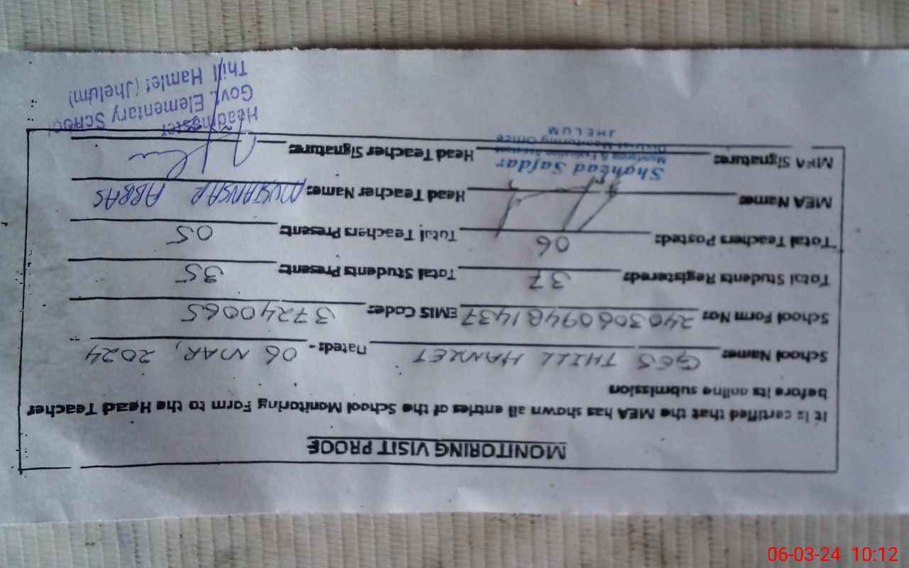 | Certified that this School was Inspected by the Undersigned MEA/DMO Today and the Information Stated Above is as Per Record. | |||||