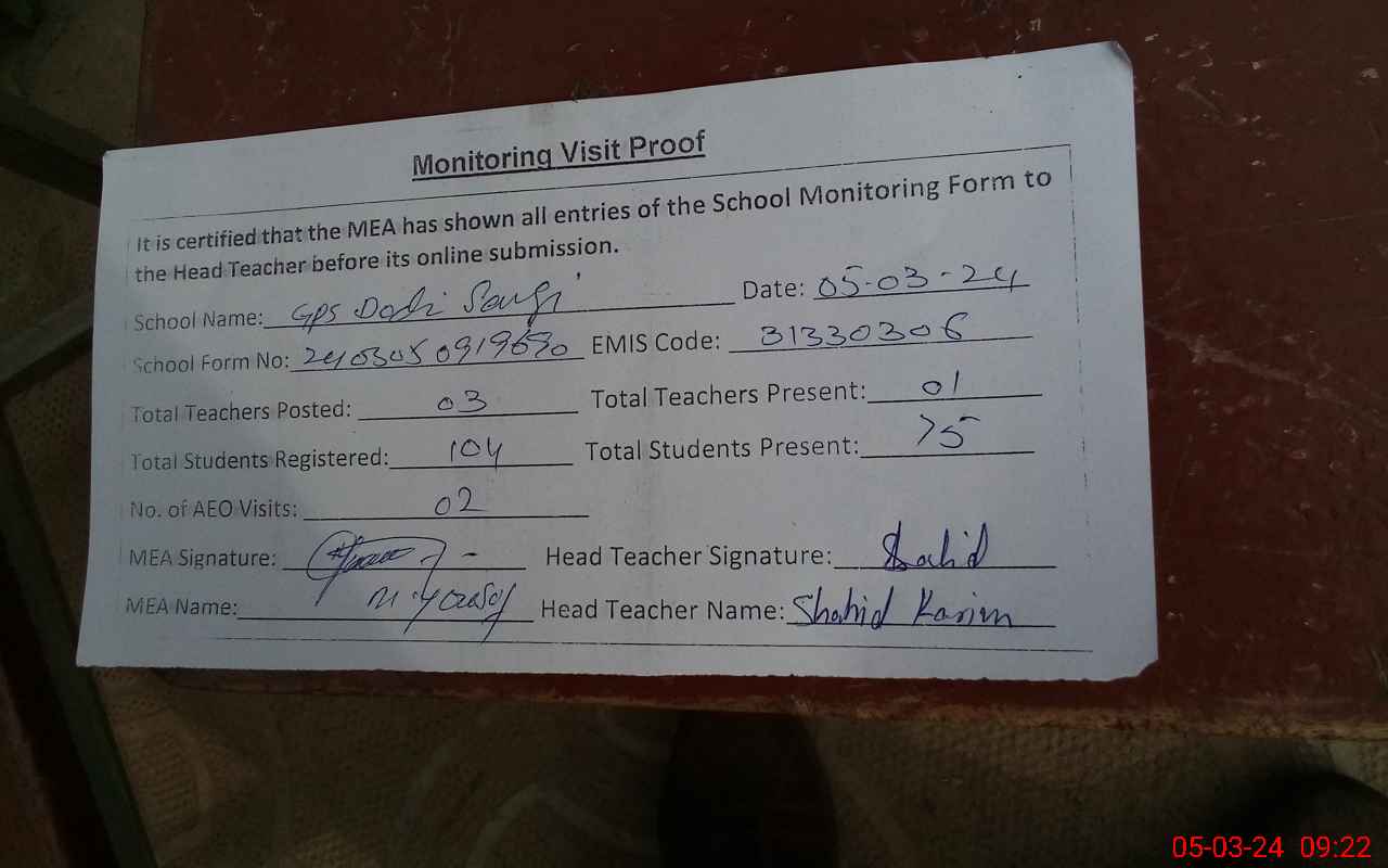| EMIS Code: 31330306 | Name of School: GPS DODI SINGI | |||