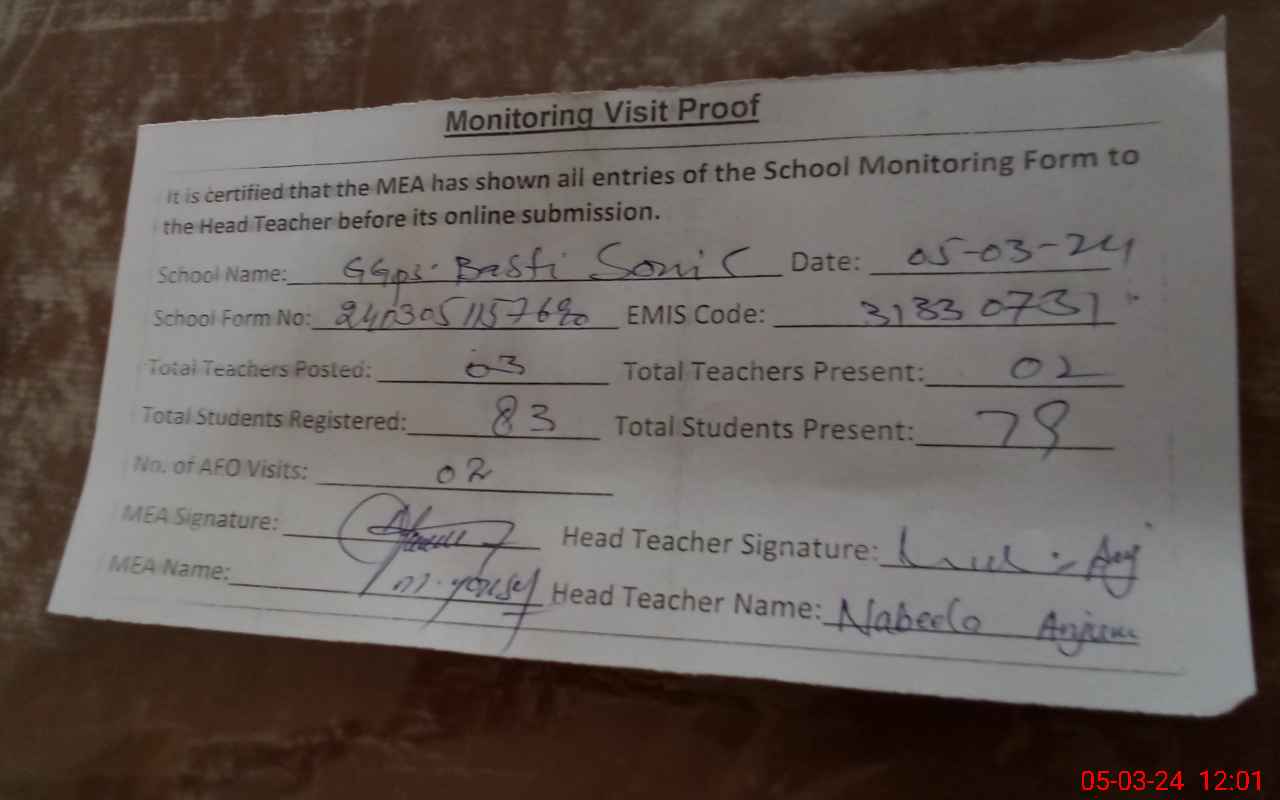 | EMIS Code: 31330731 | Name of School: GGPS BASTI SONIC | |||