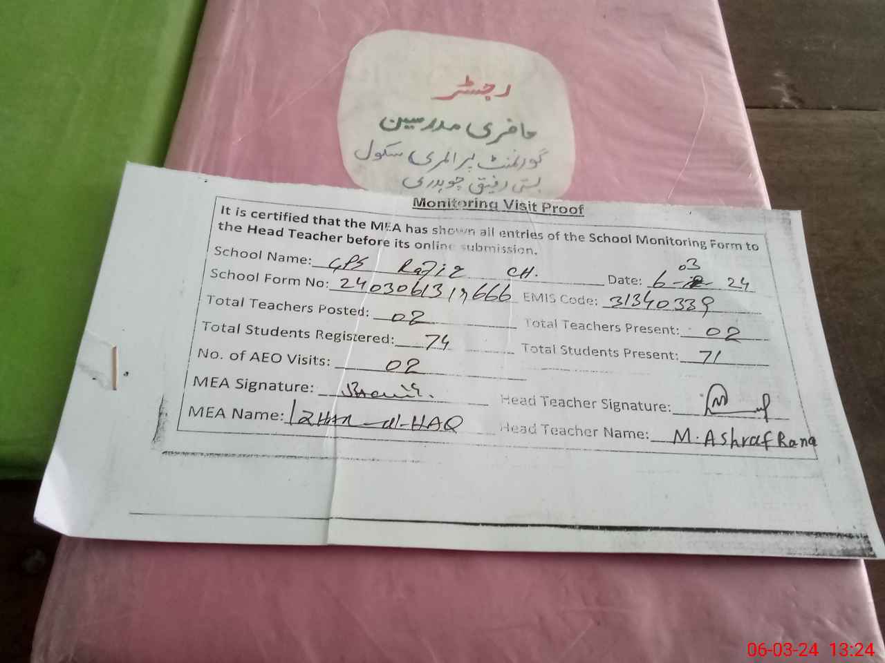| EMIS Code: 31340339 | Name of School: GPS BASTI RAFIQ CH. PO CHAK NO 24 | |||