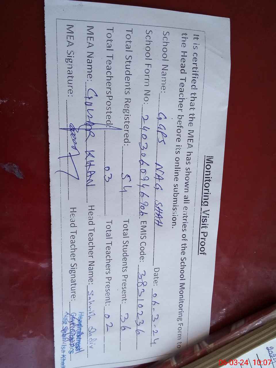 | EMIS Code: 38310236 | Name of School: GGPS NAG SHAH | |||