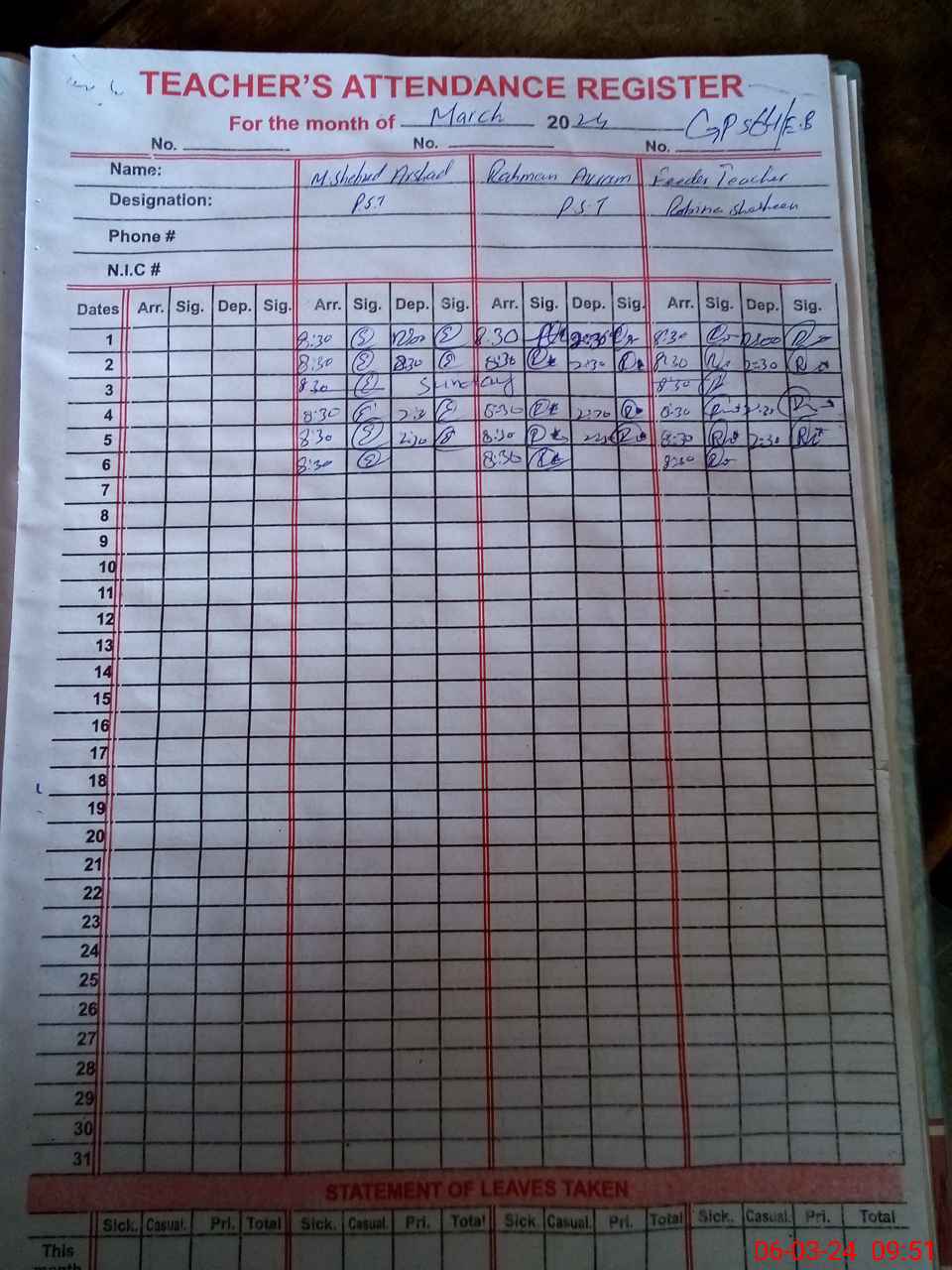 | Name: MU**** SH**** AR**** Designation: (School Headmaster's/Headmistress's) PST Phone/Cell Number: 03**** |