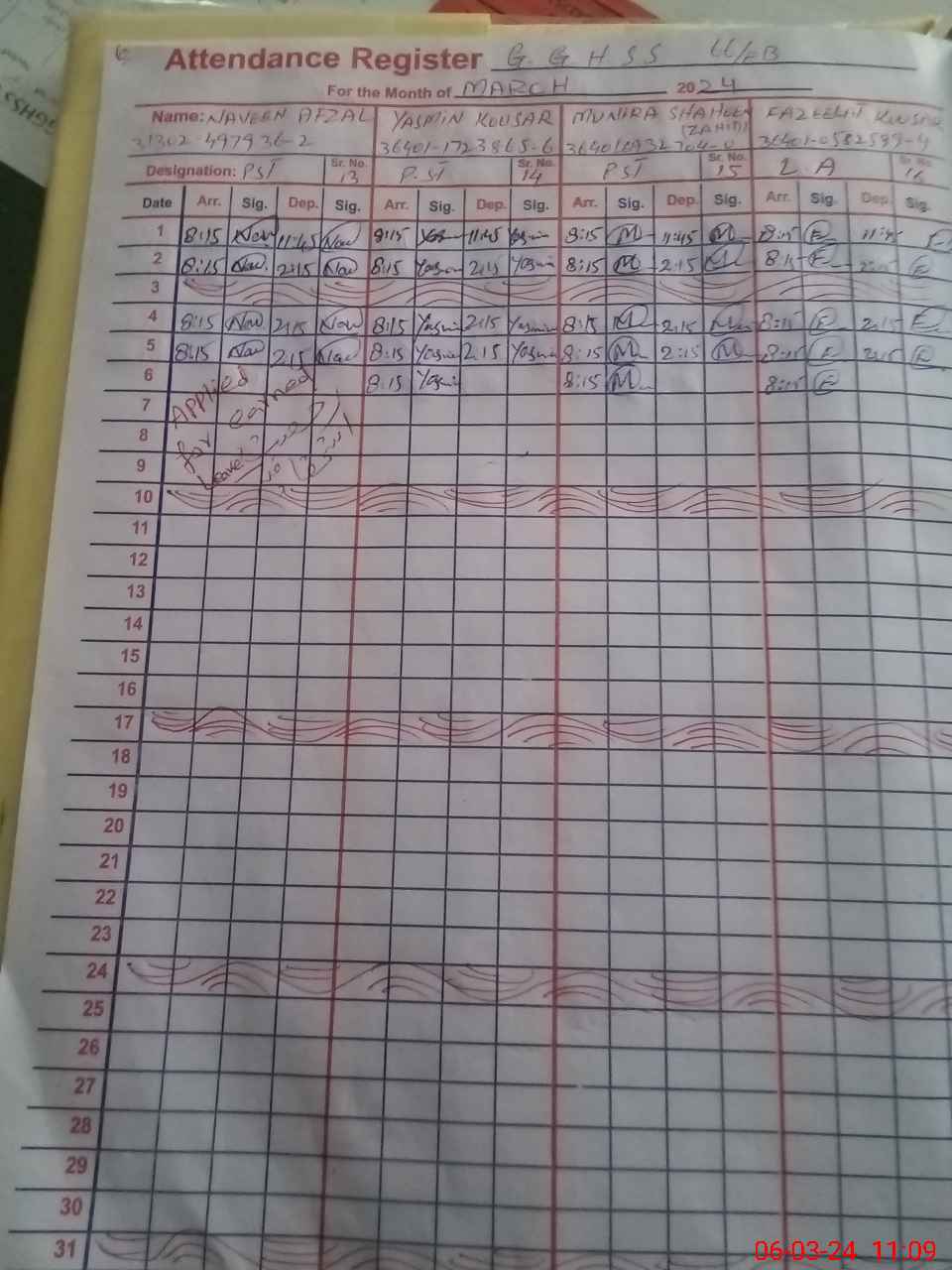 | 31**** | Na**** Af**** | PST | Regular | 4 | 0 | 0 | 0 | 0 | 0 | 0 | 0 | 4 | Earned |