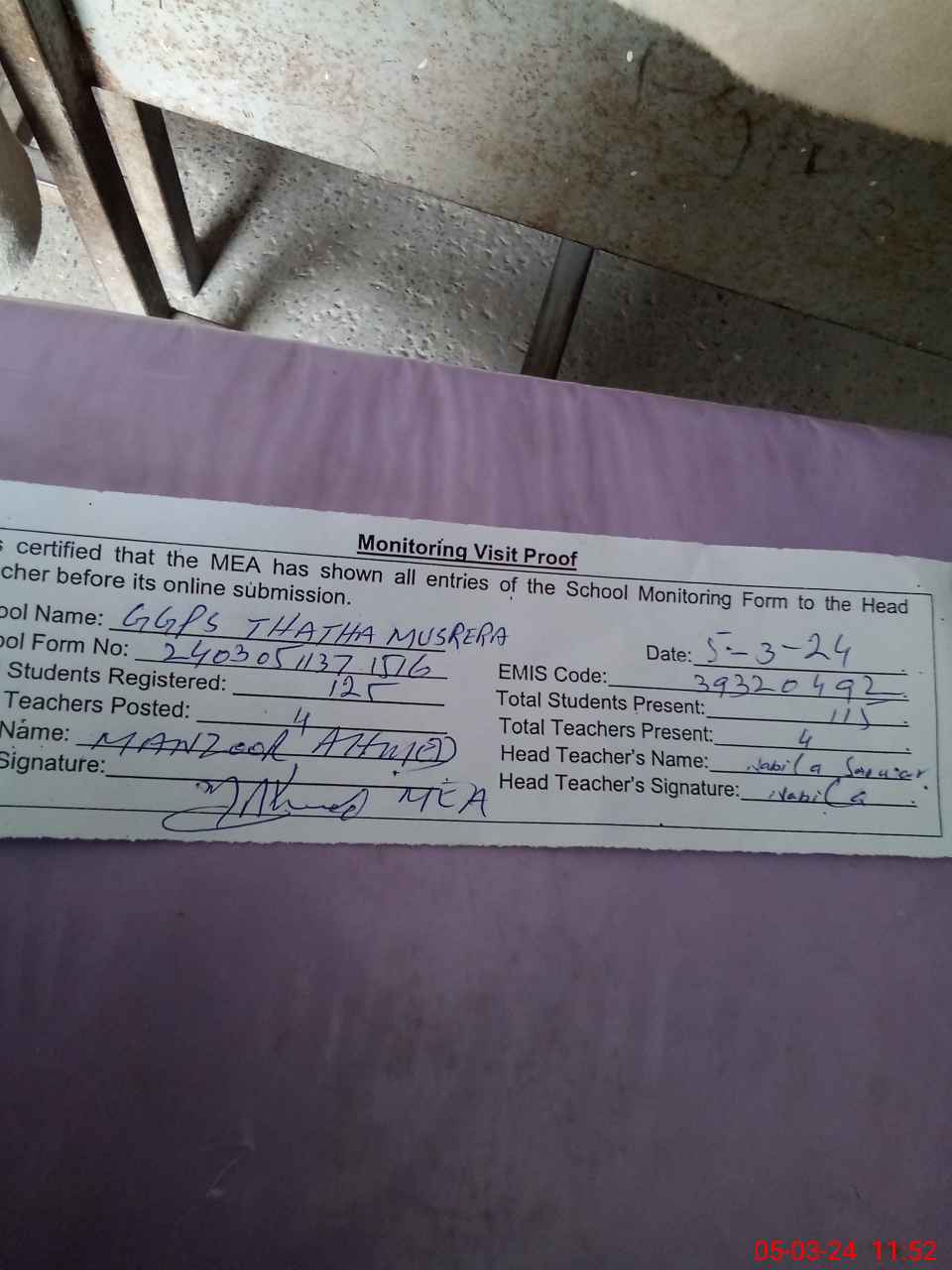 | EMIS Code: 39320492 | Name of School: GGPS THATHA MUSRERA | |||