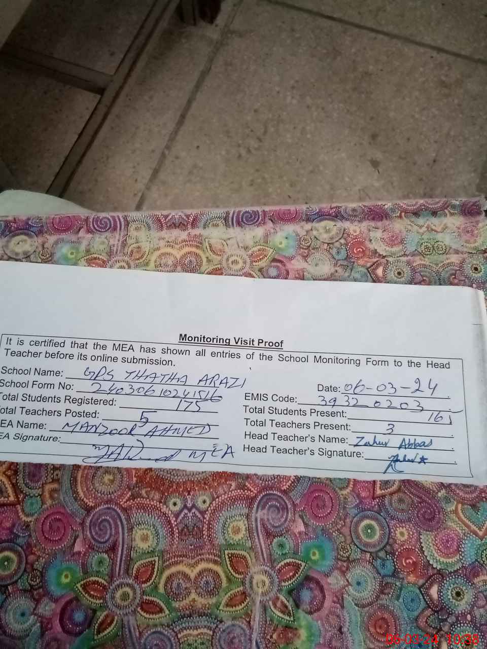 | EMIS Code: 39320203 | Name of School: GPS THATHA ARAZI | |||