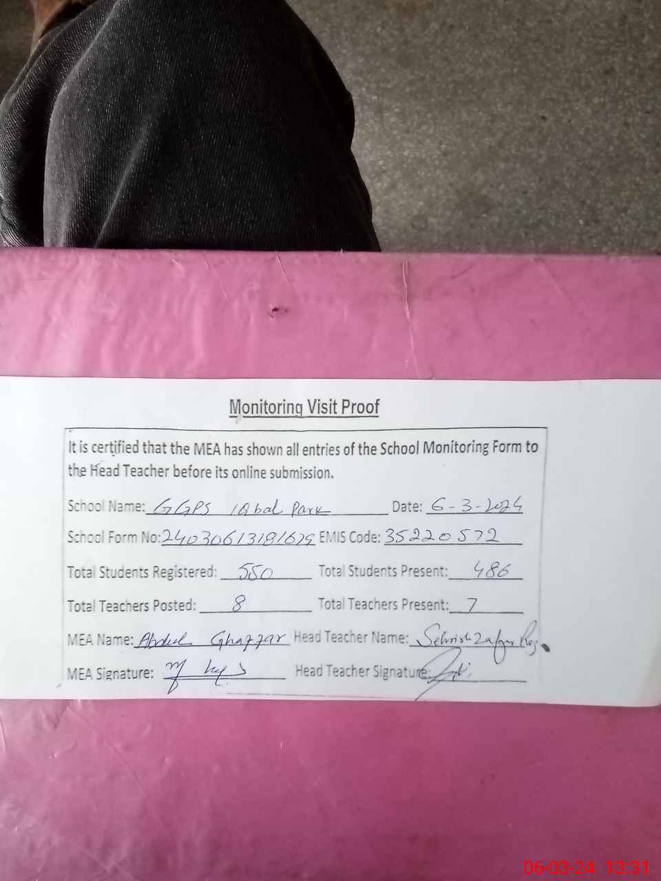 | EMIS Code: 35220572 | Name of School: GGPS JUNIOR MODEL IQBAL PARK | |||