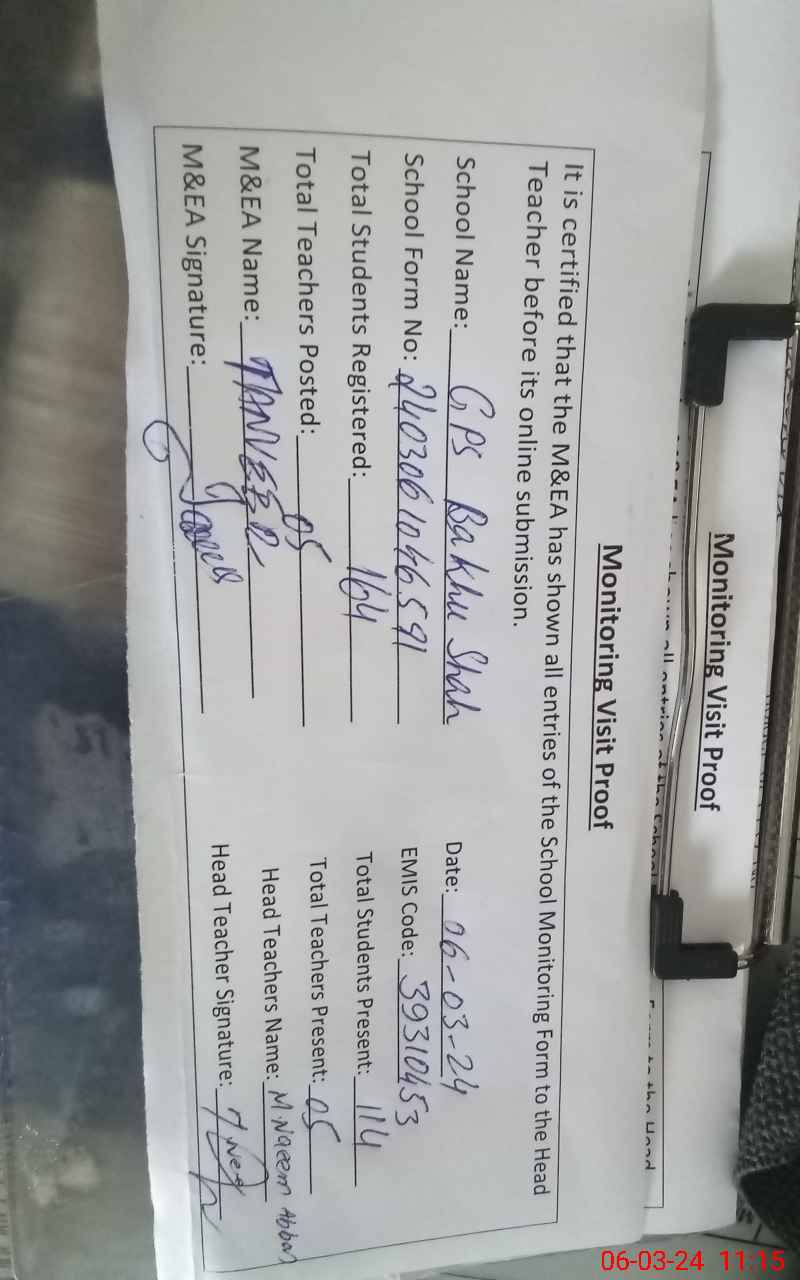 | EMIS Code: 39310453 | Name of School: GPS BAKHU SHAH | |||