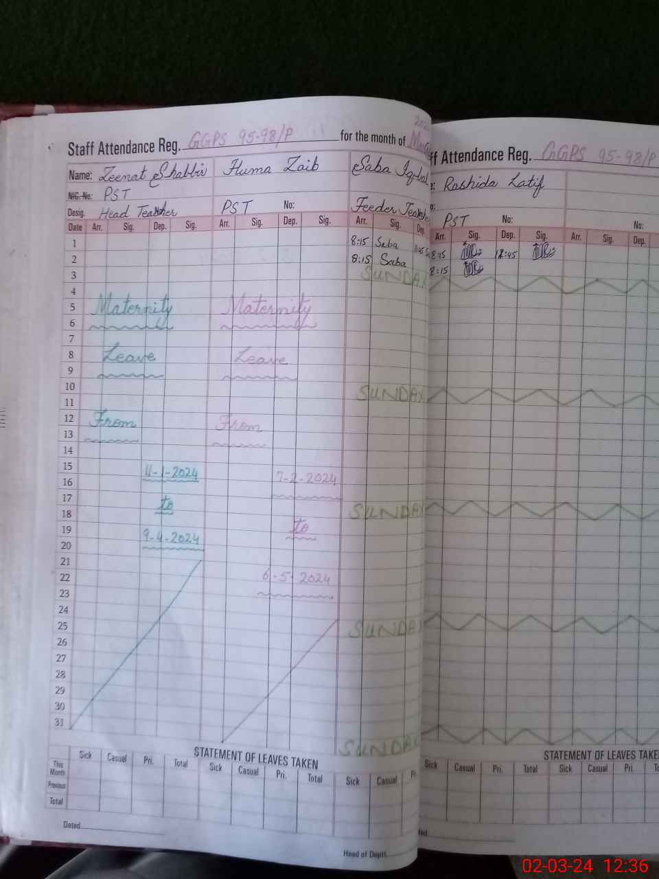 | 32**** | Hu**** Za**** | PST | Regular | 20 | 0 | 0 | 20 | 0 | 0 | 0 | 0 | 0 | Maternity |