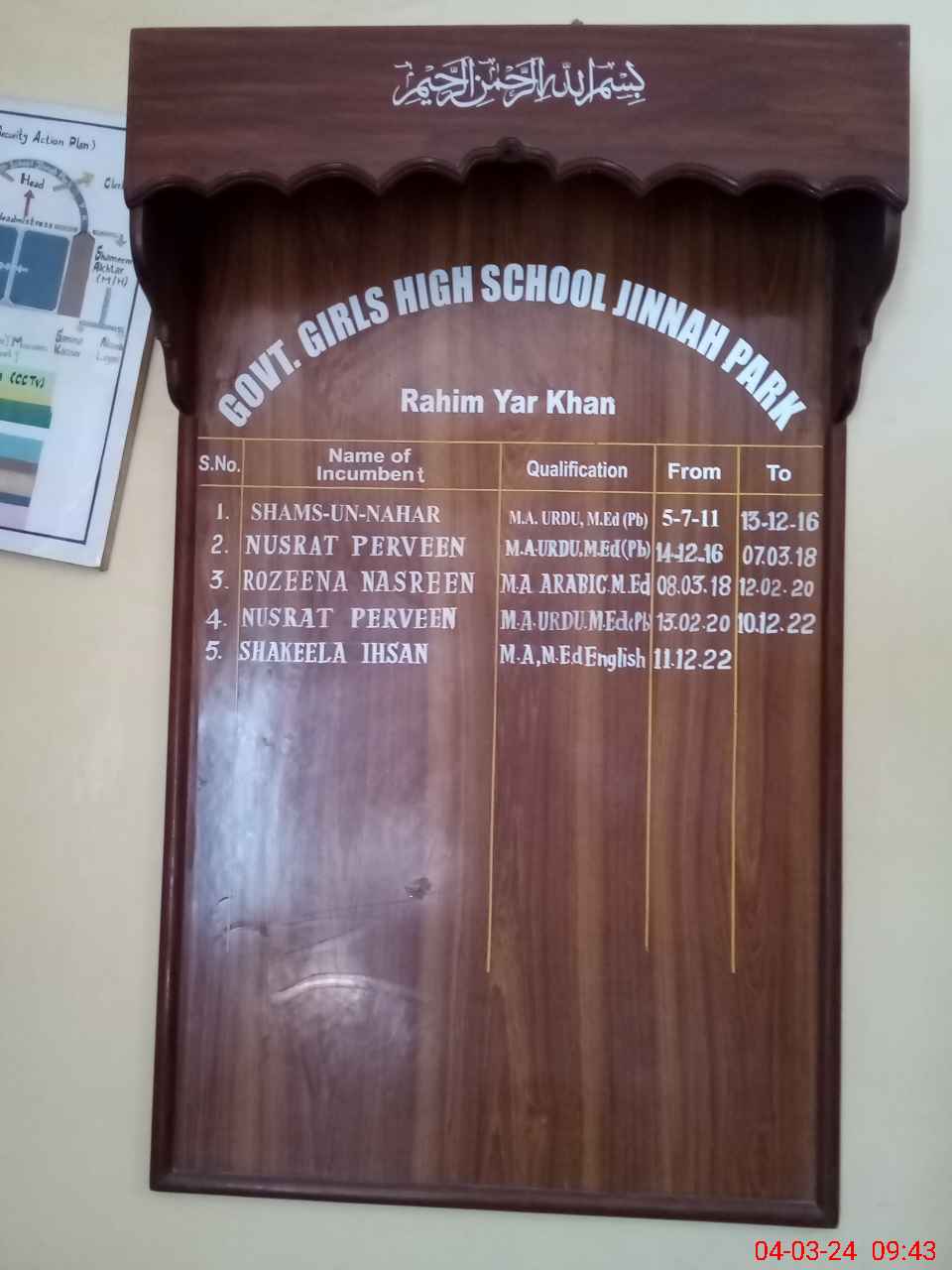 | Name: Sh**** Eh**** Designation: (School Headmaster's/Headmistress's) Inch Head Mistress Phone/Cell Number: 03**** |
