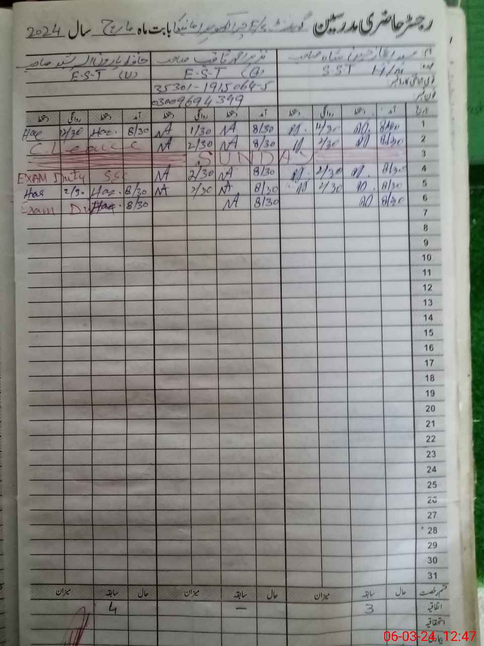 | 35**** | Mu**** Ar**** | Contract | 1 | 0 | 0 | 0 | 0 | 0 | 0 | 0 | 1 | Exam Duty | |
