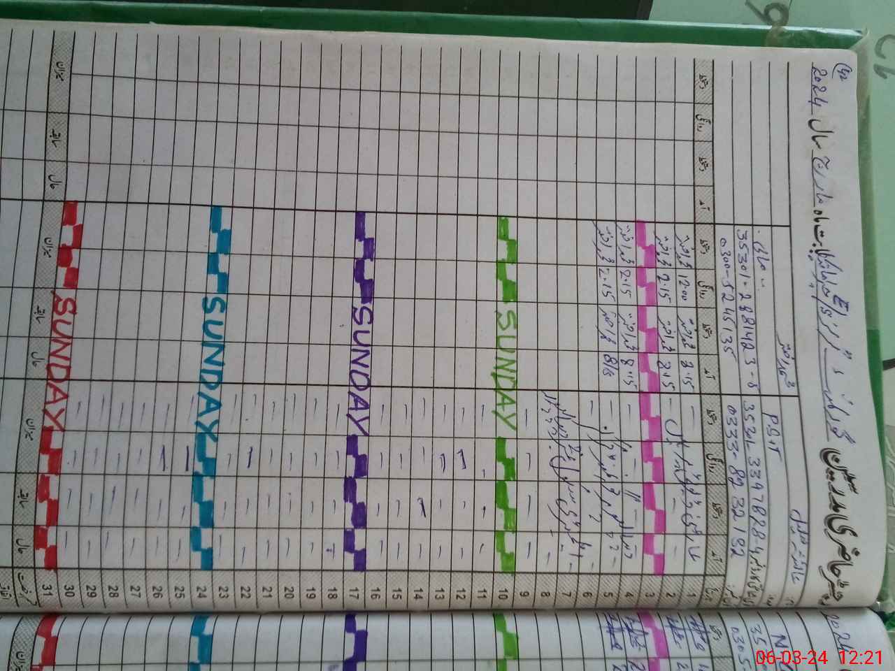 | CNIC | Full Name | Designation | R/C | Absence During Last Calender Month |