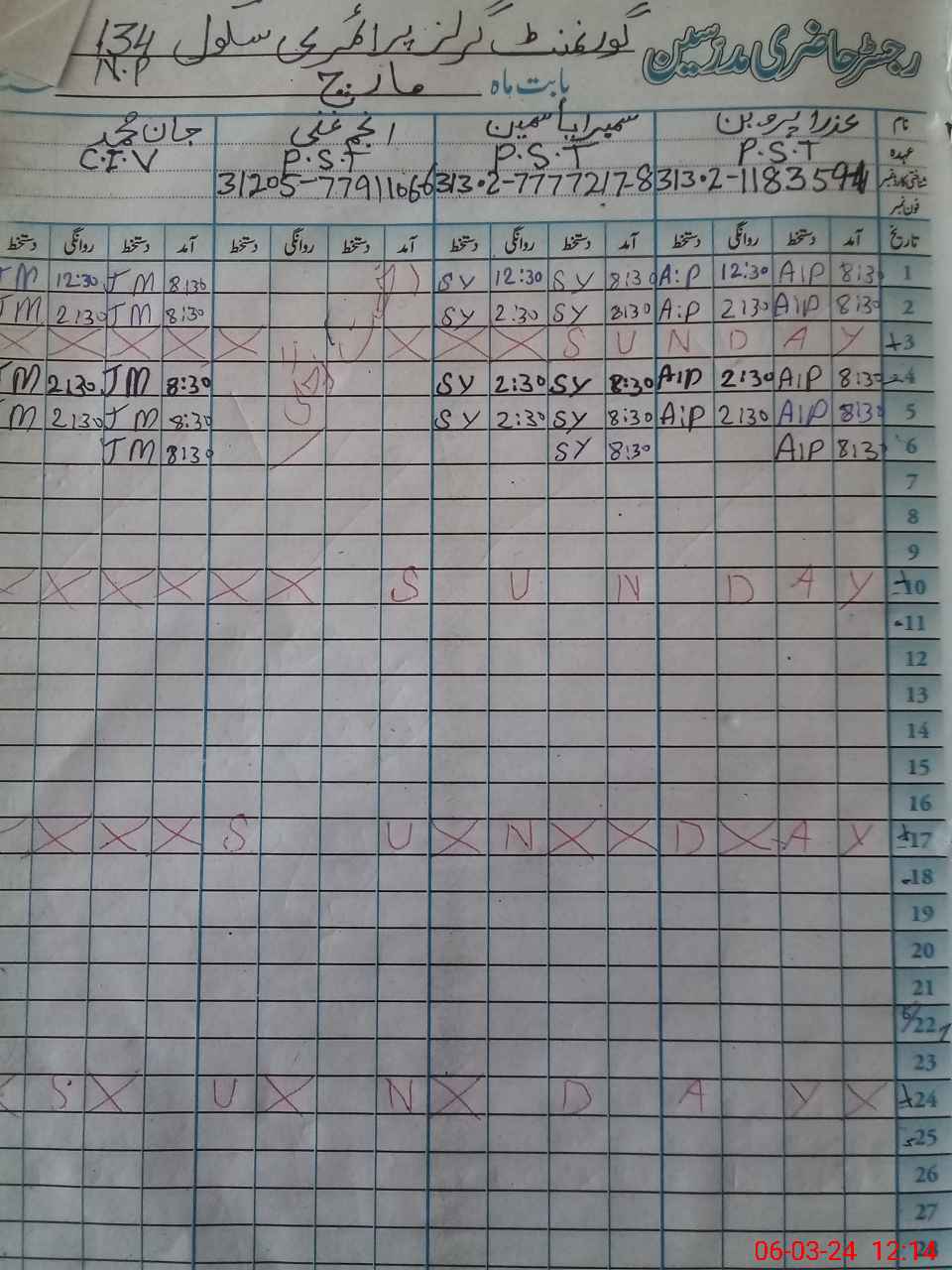 | Name: AZ**** PA**** Designation: (School Headmaster's/Headmistress's) PST/PTC/JV Phone/Cell Number: 03**** |