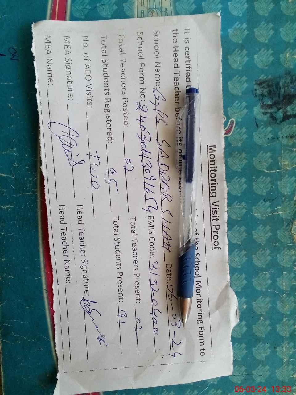 | EMIS Code: 31320400 | Name of School: GPS SADDAR SHAH | |||
