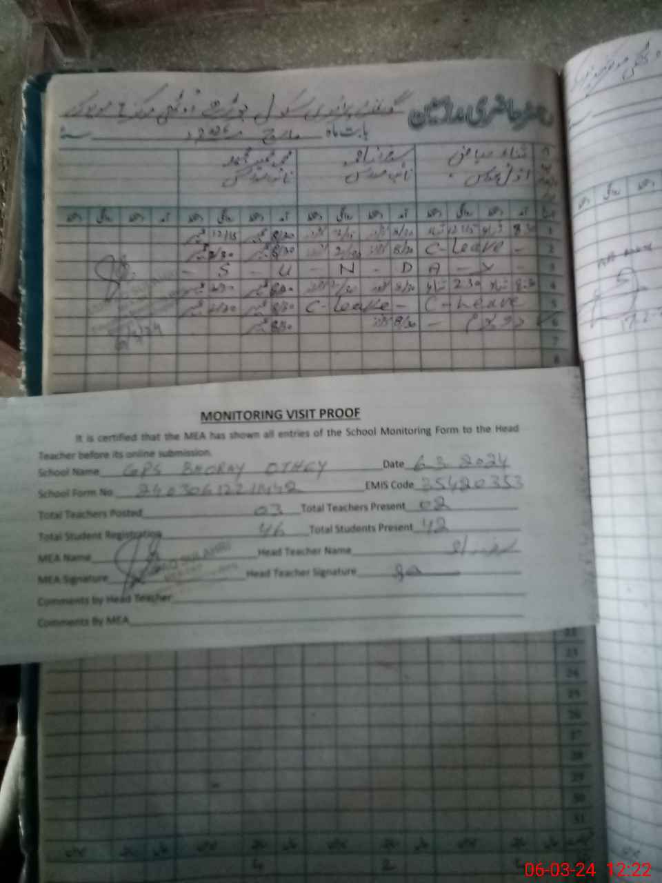 | EMIS Code: 35420353 | Name of School: GPS BHORAY OTHEY | |||