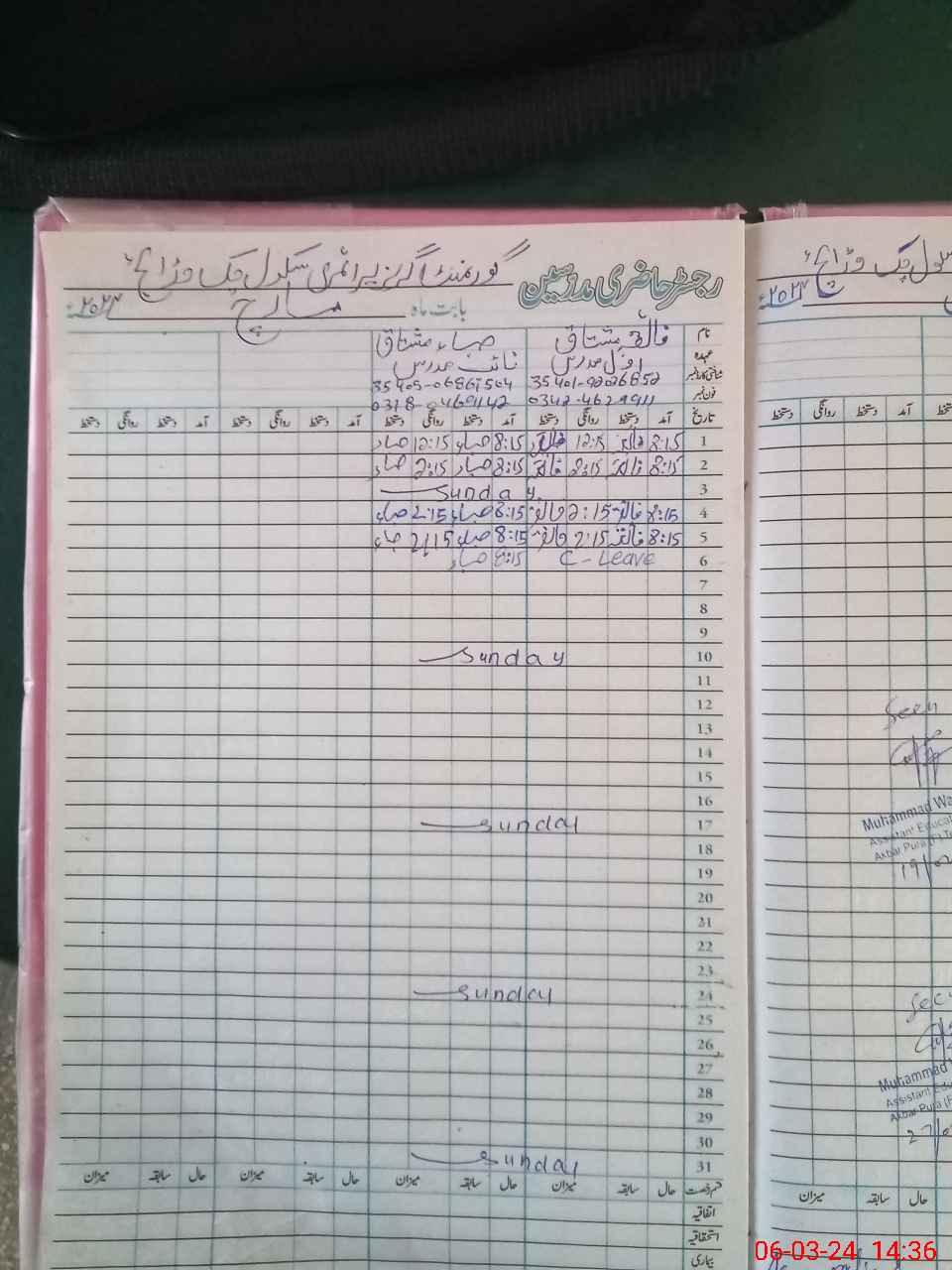 | Name: FA**** MU**** Designation: (School Headmaster's/Headmistress's) PST Phone/Cell Number: 03**** |