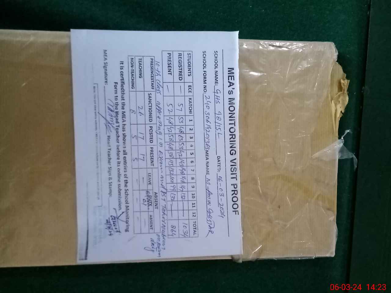 | Attendance Register | Head Teacher | MEA with School | Visit Proof |