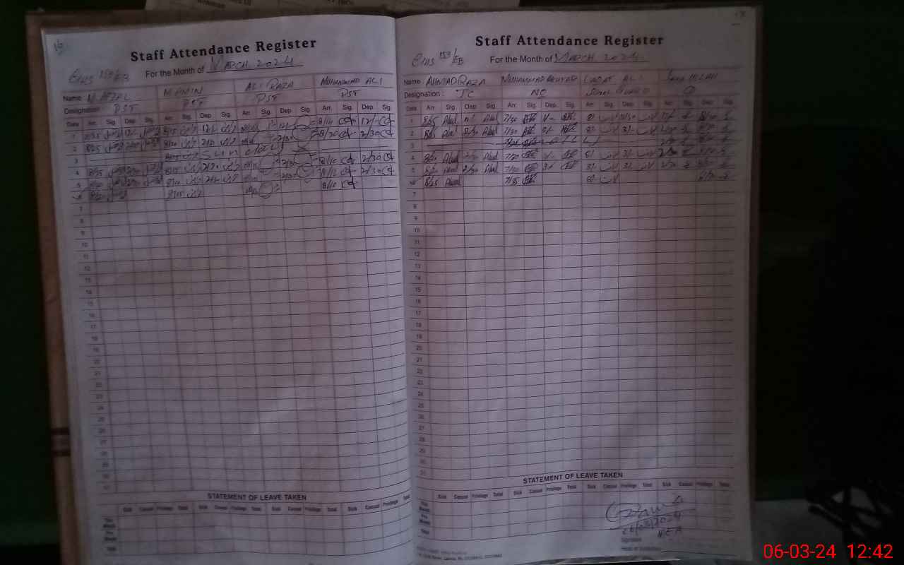 | Attendance Register | Head Teacher | MEA with School | Visit Proof |
