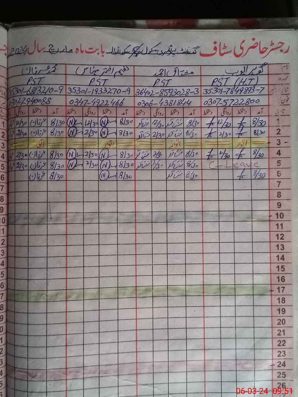 | CNIC | Full Name | Designation | R/C | Absence During Last Calender Month |