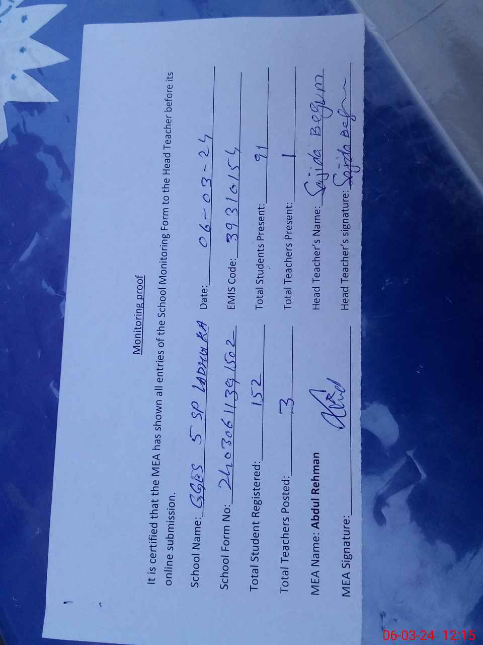 | EMIS Code: 39310154 | Name of School: GGES 5/S.P LADHUKA | |||