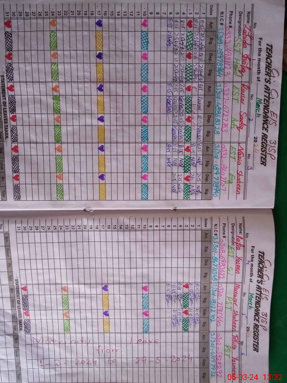 | Leave | Duty | Absent | Maternity | Medical | Ex- Pak |