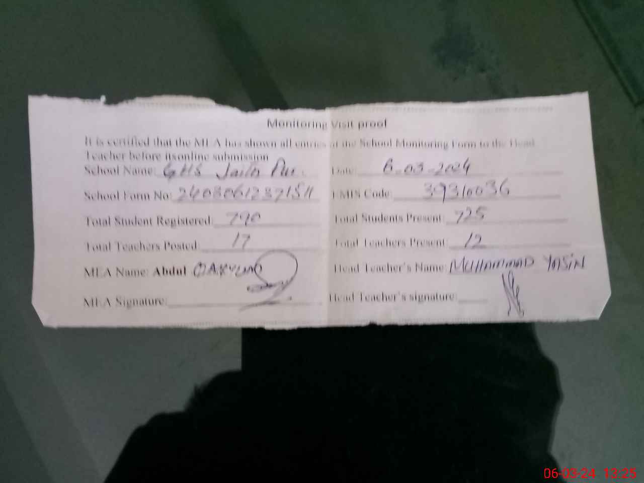| EMIS Code: 39310036 | Name of School: GHS JAITH PUR | |||