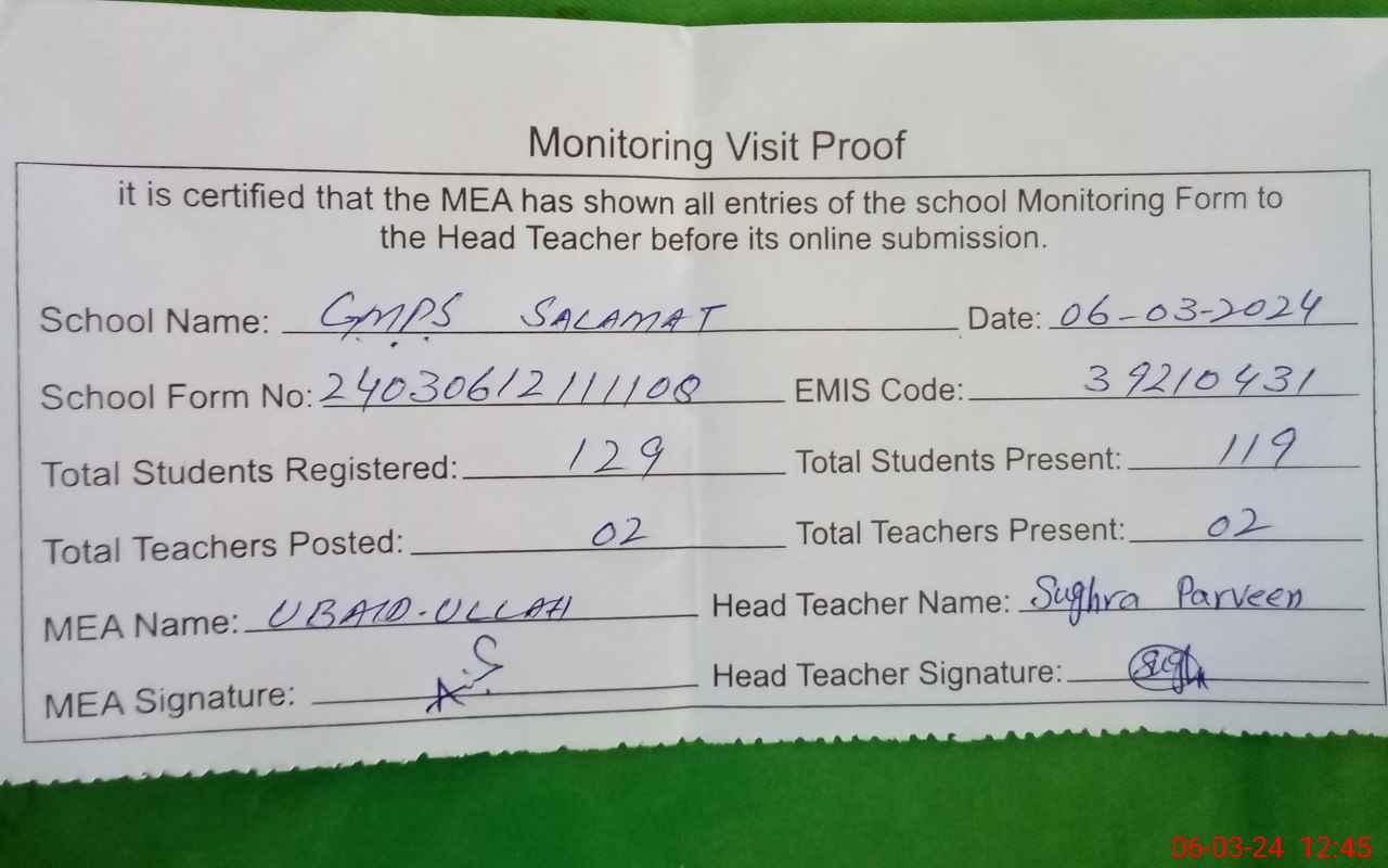 | EMIS Code: 39210431 | Name of School: GMPS CHAK SALAMAT | |||